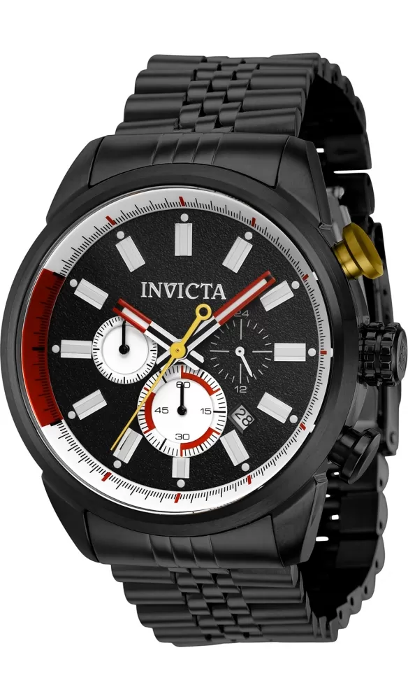 Športový pánsky model je vyrobený z vysoko kvalitnej nerezovej ocele, ktorá je ošetrená PVD povrchovou úpravou v čiernej farbe. Okrúhle púzdro poháňa spoľahlivý strojček Seiko VD53 a batéria s dvojročnou životnosťou. Čierny číselník je doplnený bielymi ručičkami a indexmi hodín. Tiež má k dispozícii chronograf a dátum. Vodotesnosť u tohto pánskeho modelu je 100M.