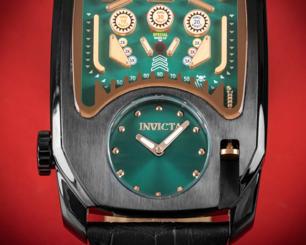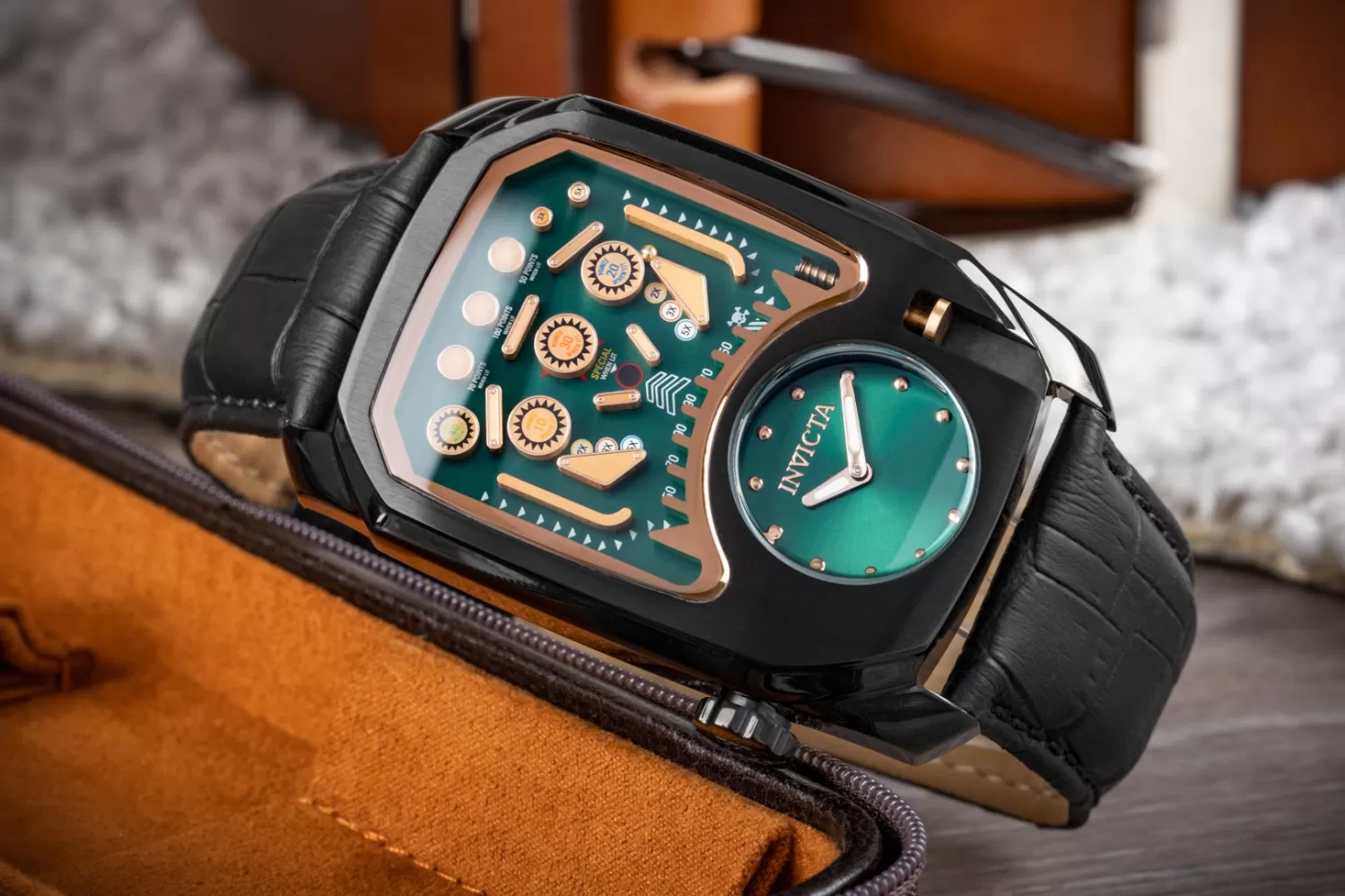 Exkluzívny model v retro štýle zaujme snáď každého. Hodinky majú hranaté puzdro vyrobené z vysoko kvalitnej nerezovej ocele, ktorá je ošetrená PVD povrchovou úpravou v čiernej farbe. Puzdro je vybavené strojčekom Seiko PC10 a batériou s dvojročnou životnosťou. Dominantou tohto exkluzívneho modelu je zaručene číselník, ktorý sa neopozerá. Remienok je vyrobený z pravej kože, ktorá sa do celého konceptu veľmi hodí.