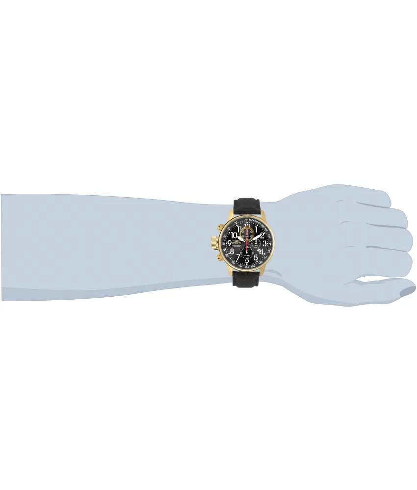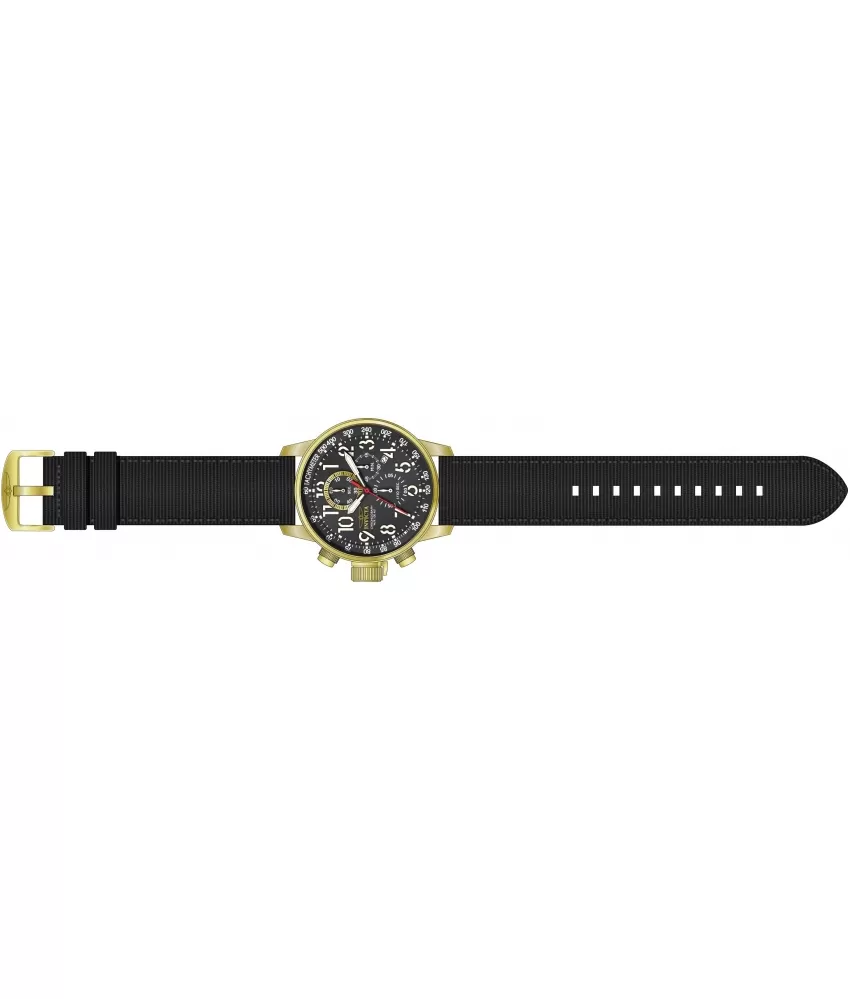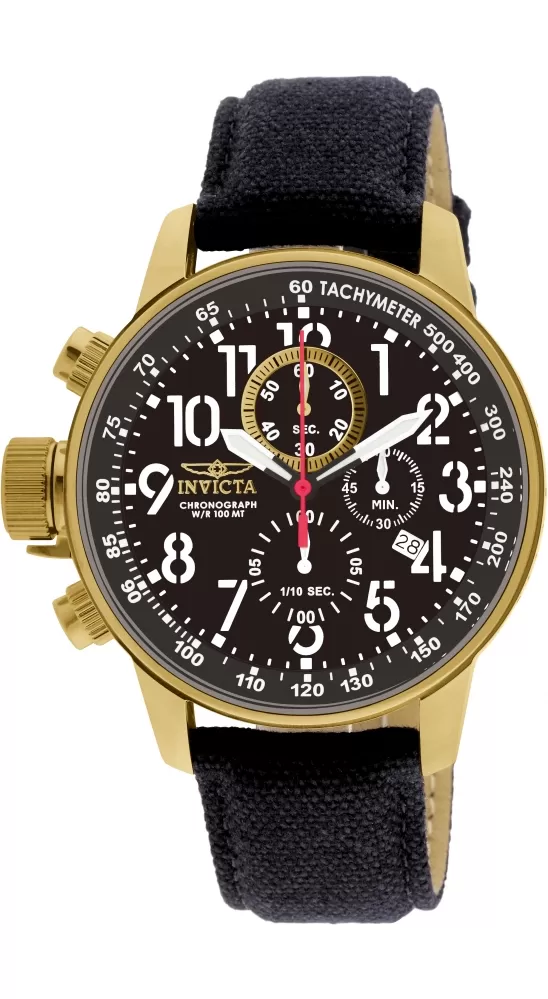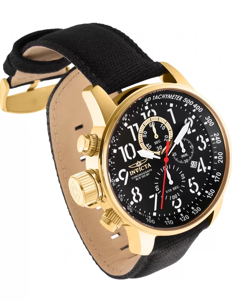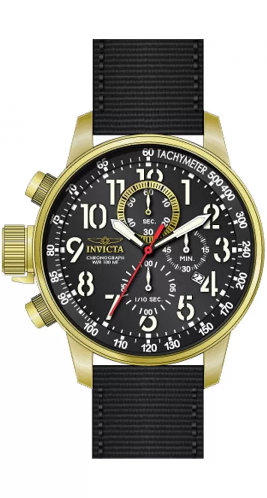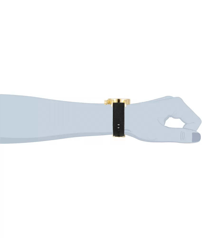 Pánske hodinky v elegantnom dizajne majú oceľové puzdro, opatrené PVD povrchovou úpravou vo farbe žltého zlata. Číselník v čiernej farbe je vybavený tachymetrickou lunetou, dátumom a stopkami. Je veľmi prehľadný a to predovšetkým vďaka arabskými číslicami, ktoré sú potiahnuté luminiscenčnou vrstvou. Celý model dopĺňa textilný remienok s oceľovou prackou.
