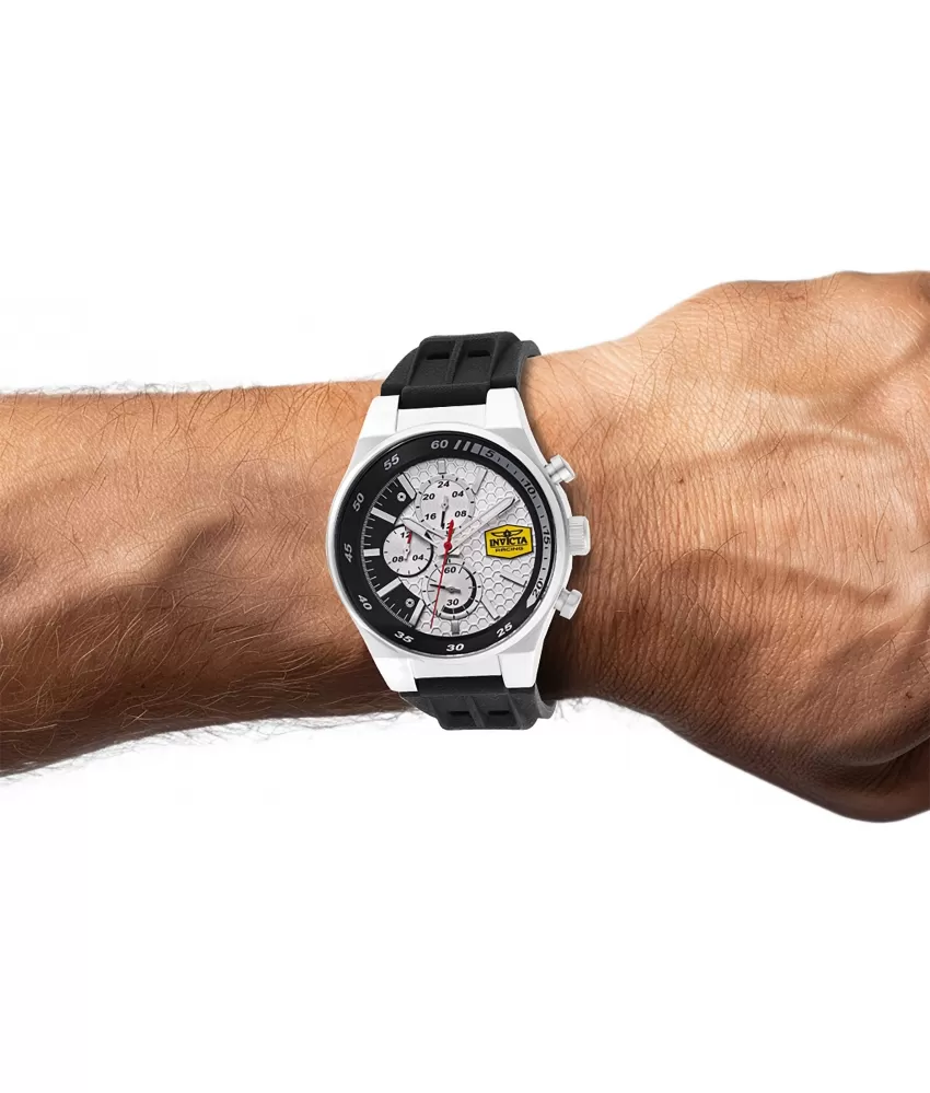Športové pánske náramkové hodinky len tak neprehliadnete. Hodinky majú kruhové puzdro zhotovené z vysoko kvalitnej nerezovej ocele, ktorú ocenia aj citliví jedinci. Hodinky poháňa japonský strojček Seiko VD38, na ktorý sa môžete stopercentne spoľahnúť. Dominantou tohto modelu číselník, ktorý Vás upúta bielou farbou a designom do ktorého je zakomponovaný dátum a stopky. Model dopĺňa silikónový remienok, ktorý dokonale priľne k akémukoľvek zápästiu.