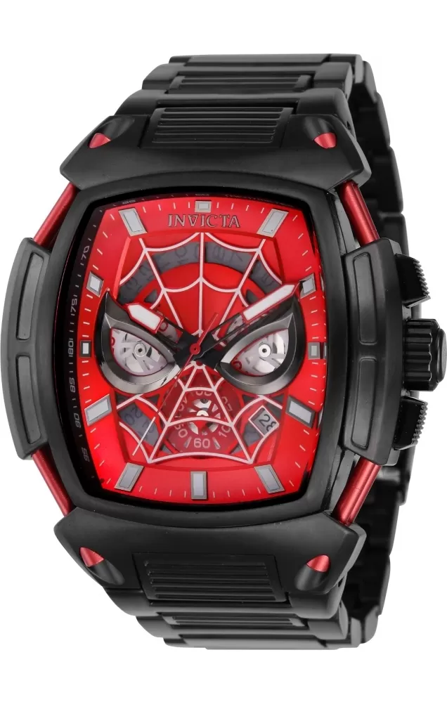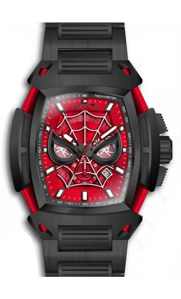 Úchvatný model z limitovanej edície Marvel je inšpirovaný populárnym hrdinom Spidermana. Hodinky sú vyrobené z vysoko kvalitnej nerezovej ocele. Dominantou tohto modelu je oválne puzdro vysadené pevnou, tachymetrickou lunetou. Puzdro je vybavené strojčekom Seiko VD53, na ktorý sa môžete spoľahnúť. Číselník s typickou pavučinou, ktorá je potiahnutá luminiscenčnou vrstvou, má k dispozícii dátum a chronograf. Vodotesnosť 100M je štandard tejto značky.