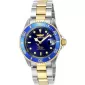 Pánske výrazné hodinky sú vyrobené z vysoko kvalitnej nerezovej ocele. oceľ je miestami ošetrená PVD povrchovou úpravou vo farbe žltého zlata. Okrúhle púzdro s jednosmernou lunetou je vybavené mechanickým strojčekom s automatickým náťahom Seiko NH35 s rezervou chodu 41h, 21.600 BPH. Veľmi prehľadný číselník v modrej farbe obsahuje dátum na pozícii troch hodín a ručičky s indexmi potiahnuté luminiscenčnou vrstvou.
