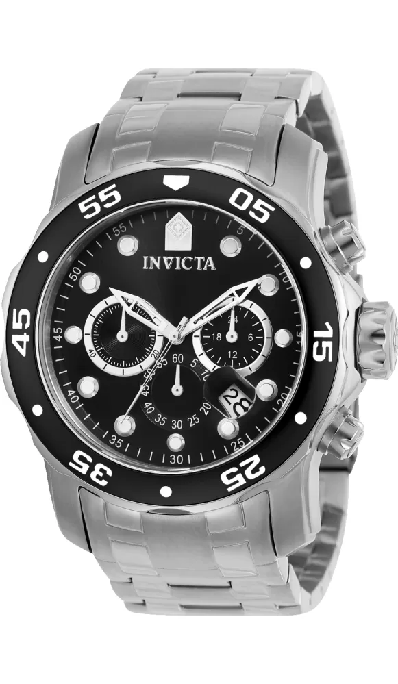 Nádherné, pánske náramkové hodinky s výraznou, jednosmernou lunetou sú vyrobené z vysoko kvalitnej nerezovej ocele, ktorú ocenia aj citliví jedinci. Čierny číselník je doplnený o indexy hodín potiahnuté luminiscenčnou vrstvou. K dispozícii má chronograf a dátum, ktorý je umiestnený na pozícii medzi štvrtou a piatou hodinou. Tento pánsky model poháňa japonský strojček Seiko VD53. Vodotesnosť 200M, Vás určite poteší.