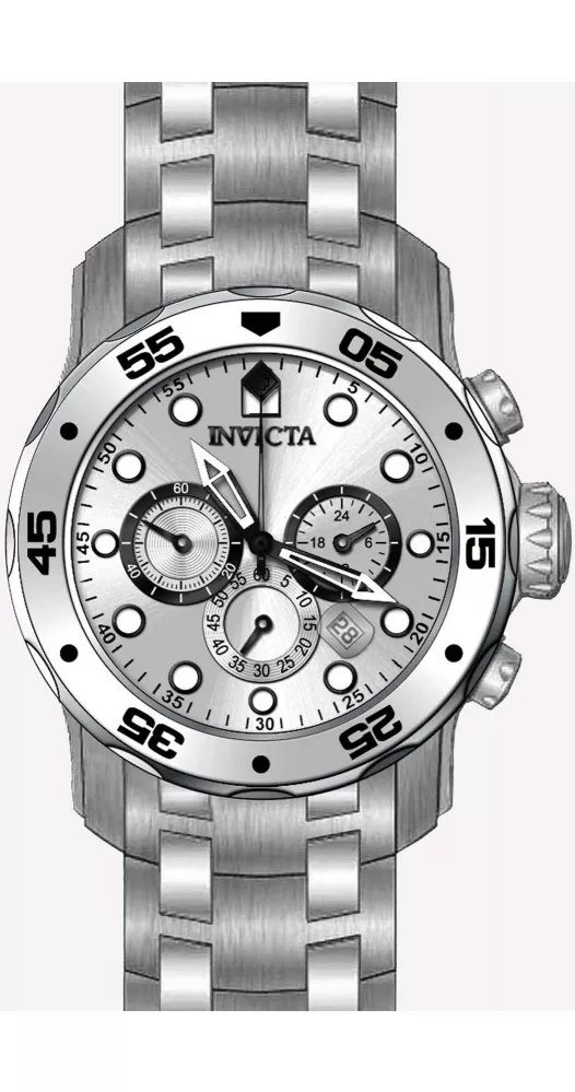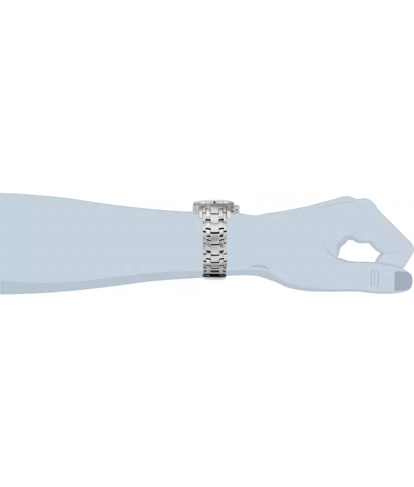 Nádherné, pánske náramkové hodinky s výraznou, jednosmernou lunetou sú vyrobené z vysoko kvalitnej nerezovej ocele, ktorú ocenia aj citliví jedinci. Býli číselník je doplnený o indexy hodín potiahnuté luminiscenčnou vrstvou. K dispozícii má chronograf a dátum, ktorý je umiestnený na pozícii medzi štvrtou a piatou hodinou. Tento pánsky model poháňa japonský strojček Seiko VD53. Vodotesnosť 200M, Vás určite poteší.