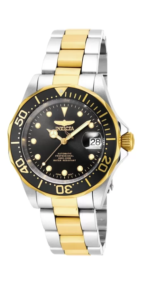 Elegantný model pre mužov je vyrobený z kvalitnej nerezovej ocele, ktorá je miestami ošetrená PVD povrchovou úpravou vo farbe žltého zlata. Okrúhle puzdro je vybavené mechanickým strojčekom s automatickým náťahom. Seiko NH35 s rezervou chodu 41 h, 21 600 BPH (3 Hz). Puzdro je tiež zvýraznené jednosmerným rámom v čiernej farbe. Ciferník má dátum na pozícii tretej hodiny a nepochybne ručičky s indexmi potiahnutými luminiscenčnou vrstvou.