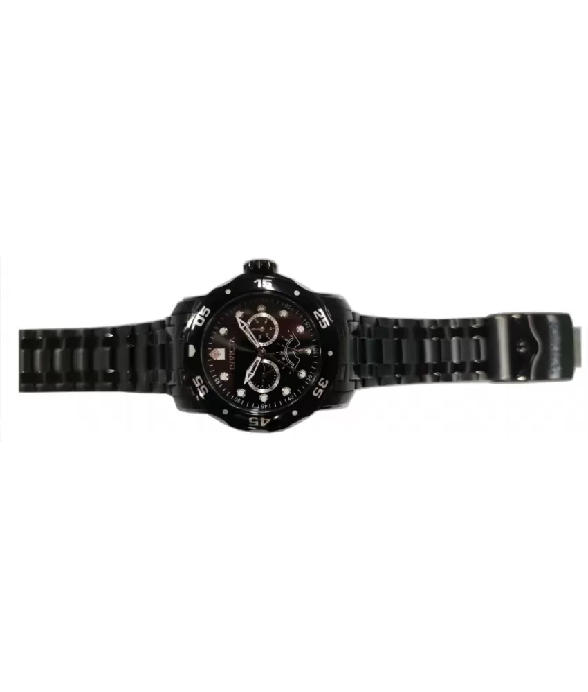 Pánske hodinky značky Invicta sú tým pravým pre všetkých mužov, ktorí neradi splývajú s davom. Puzdro aj ťah sú vyrobené z prvotriednej ušľachtilej ocele s čiernou PVD úpravou. Čierny ciferník zdobia tri chronografy, luminiscenčné ručičky a indexy, vďaka ktorým vždy dokonale uvidíte na aktuálny čas. K dokonalosti tohto modelu prispieva aj vodotesnosť až do 200 metrov, vďaka ktorej si hodinky nemusíte dávať dole ani pri potápaní. Ozdobte svoje zápästie doplnkom, ktorý vaše okolie rozhodne nenechá bez povšimnutia.