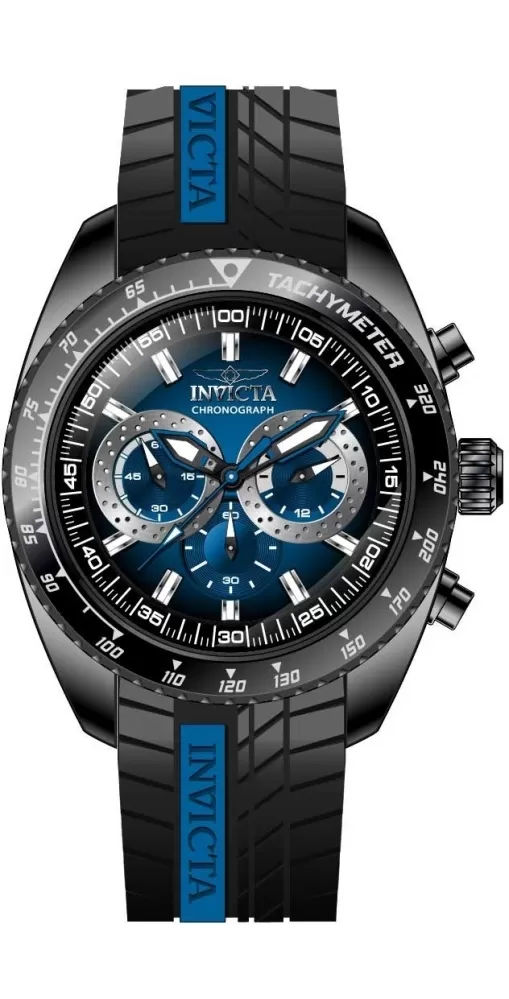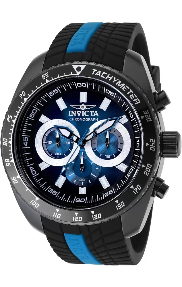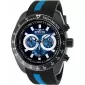 Športový pánsky model v atraktívnej farebnej kombinácii má okrúhle púzdro vyrobené z vysoko kvalitnej nerezovej ocele, ktorá je ošetrená PVD povrchovou úpravou v čiernej farbe. Puzdro zdobí pevná, tachymetrická luneta a vybavené je japonským strojčekom Seiko VD54. Číselník má k dispozícii ručičky a indexy hodín, potiahnuté luminiscenčnou vrstvou a chronograf. Model dopĺňa silikónový remienok.