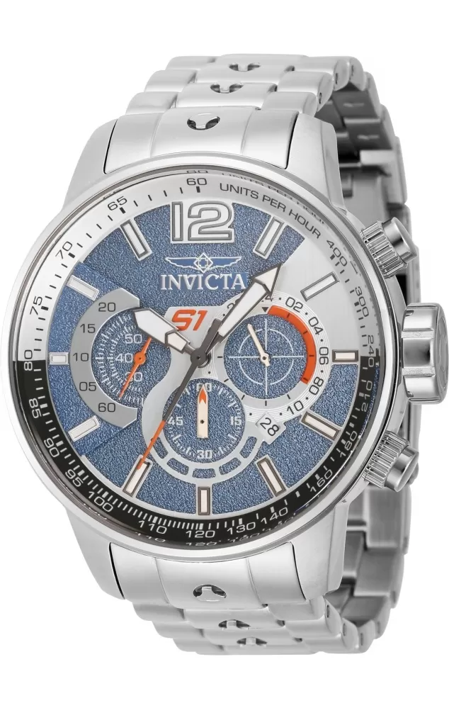 Pánske náramkové hodinky sú vyrobené z vysoko kvalitnej, nerezovej ocele. Okrúhle púzdro je vybavené japonským strojčekom Seiko VD53 a batériou s dvojročnou živostnosťou. Modrý číselník s tachymetrickou lunetou má k dispozícii dátum a stopky. Celý dizajn dopĺňajú ručičky a indexy potiahnuté luminiscenčnou vrstvou. Vodotesnosť 100M je štandard tejto značky.
