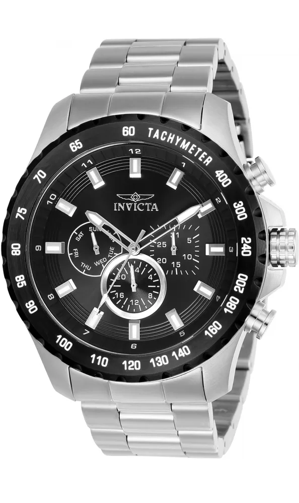 Pánske náramkové hodinky sú vyrobené z vysoko kvalitnej nerezovej ocele, ktorú ocenia aj citliví jedinci. Okrúhle púzdro je vybavené japonským strojčekom Seiko VD54 a pevnou tachymetrickou lunetou. Číselník v čiernej farbe má k dispozícii dátum a dni v týždni. Ďalej ručičky a indexy potiahnuté luminiscenčnou vrstvou. Vodotesnosť 100M je štandard tejto značky.