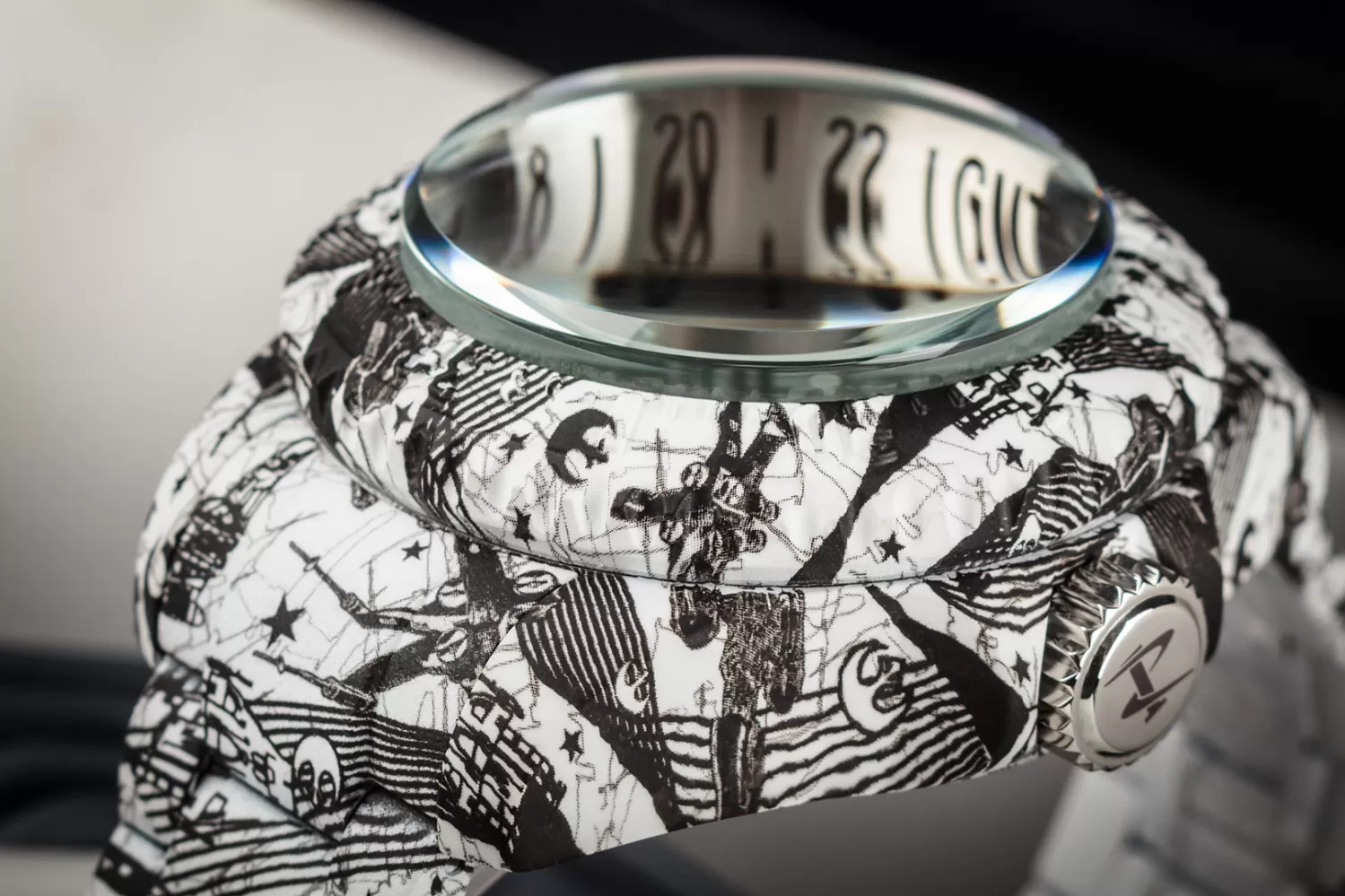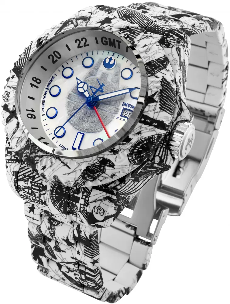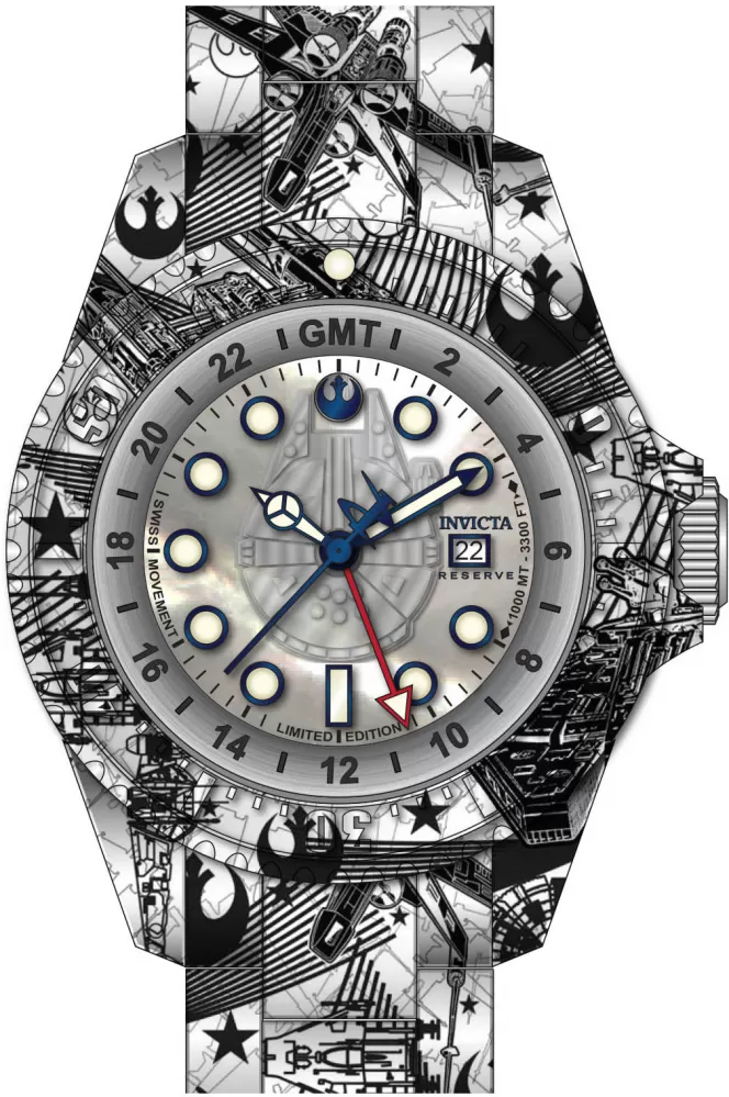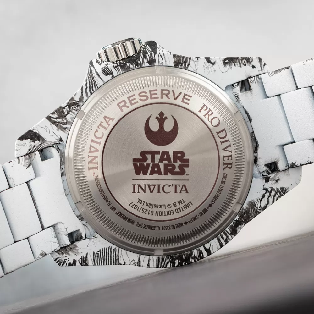 Veľmi originálny model z limitovanej edície Star Wars je vyrobený z vysoko kvalitnej nerezovej ocele, ktorá je vybavená PVD povrchovou úpravou. Masívne puzdro je vybavené švajčiarskym strojčekom Ronda 515.24H s presnosťou -10/+20s za mesiac a batériou 371 s trojročnou životnosťou. .Číselník má k dispozícii dátum, ktorý nájdete na pozícii troch hodín. vodotesnosť 1000M, určite mnohých prekvapí.