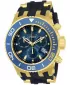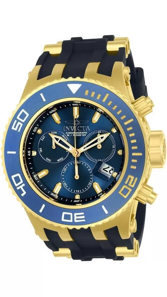 Masívny pánsky model má okrúhle púzdro vyrobené z vysoko kvalitnej nerezovej ocele, ktorá je ošetrená PVD povrchovou úpravou vo farbe žltého zlata. Puzdro je zvýraznené jednosmernou lunetou s arabskými číslicami. Prehľadný číselník v príjemnej modrej farbe má k dispozícii dátum, umiestnený na pozícii medzi štvrtou a piatou hodinou a chronograf. Silikónový remienok Vám spríjemní každodenné nosenie modelu.