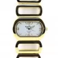 Náramkové hodinky oválneho tvaru s bielym ciferníkom. Celý popis