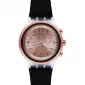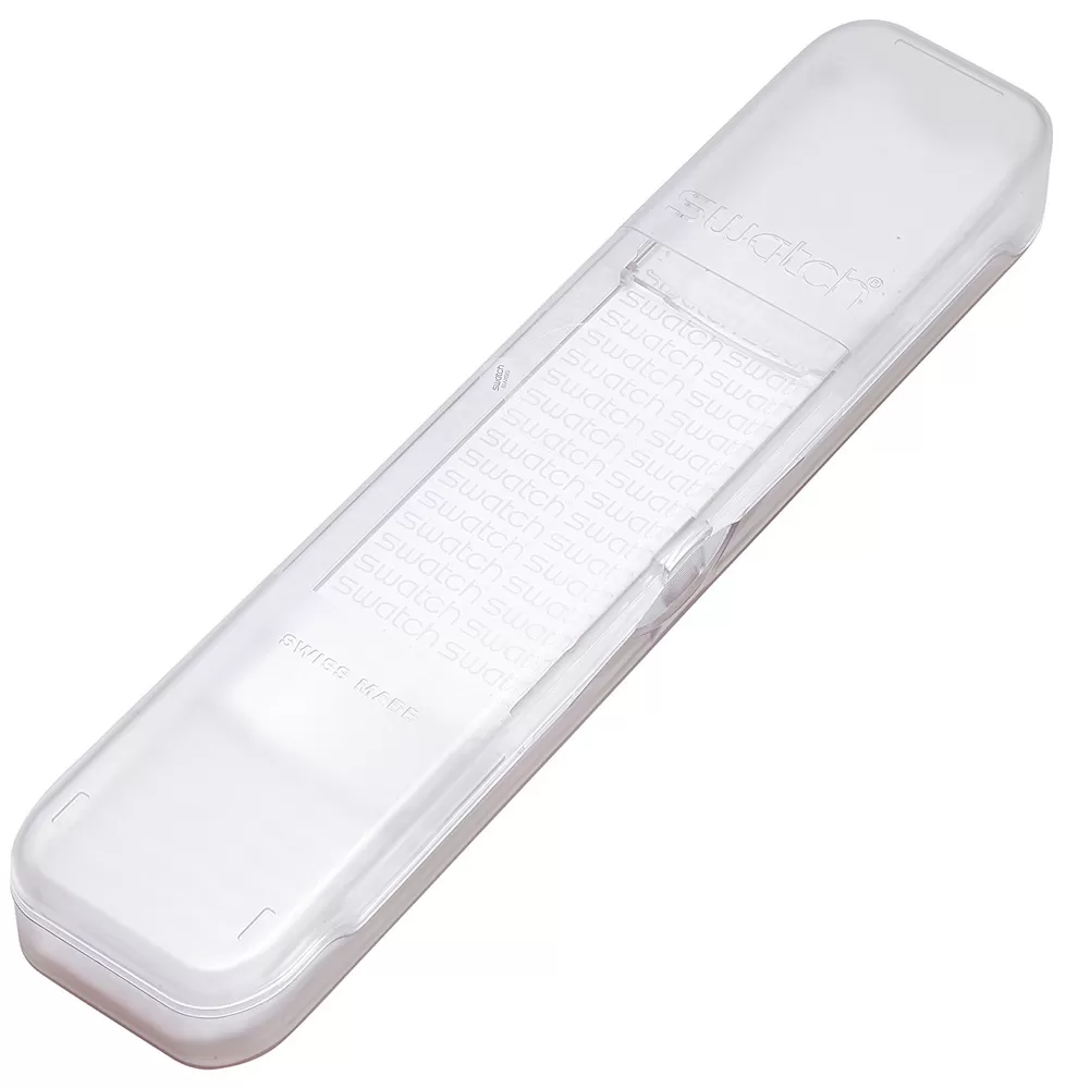 Hľadáte elegantné a zároveň športové hodinky? Práve pre Vás je tu model Elebrown od značky Swatch! Veľmi elegantné hodinky, ktoré budú zdobiť vaše zápästie ako šperk a zároveň si s nimi môžete ísť zabehať. Hodinky sú vyrobené v kombinácii plastového priehľadného puzdra a silikónového remienka v čiernej farbe. Ciferník vo farbe ružového zlata je originálne spracovaný a krásne na ňom vyniknú čierne indexy hodín a číslice. Obsahuje chronograf a stopky. S týmto modelom Vás zaručene nikto neprehliadne.