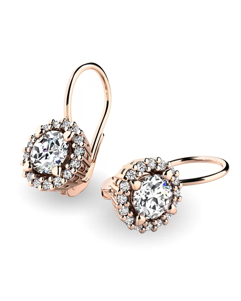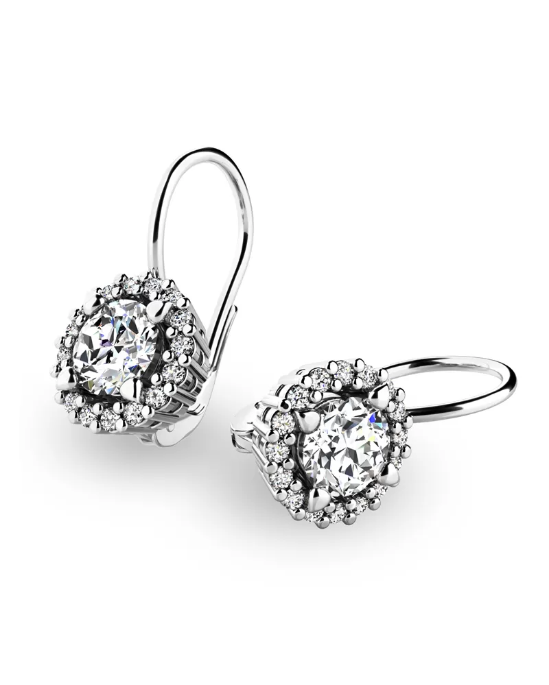 Nádherné dámské náušnice bohatě osazené zirkony budou ideálním dárkem pro každou ženu. V náušnicích dominuje ve spodní části výrazný zirkon o velikosti 5,00 mm a poté jsou kolem něj po celém obvodu osazeny drobné zirkony. Vsazené zirkony jsou vybroušeny dokonalým briliantovým brusem, díky kterému dokonale odráží světlo a jejich brilance neuvěřitelné září z každého úhlu pohledu! Všechny zirkony jsou pevně uchyceny krapnami. Vsazování zirkonů provádějí naši nejzkušenější mistři zlatníci ručně pod mikroskopem s přesností na 0,01mm a proto nehrozí vypadnutí kamínků jako to bývá u strojně vyráběných náušnic. Celé náušnice působí dokonalým a luxusním dojmem!
