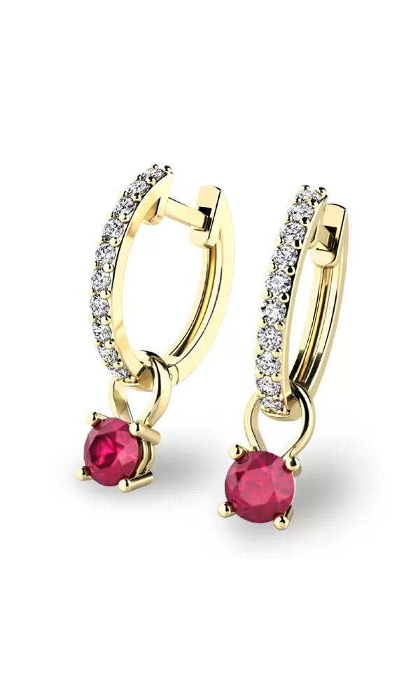 Prívesky s rubíny je možné z náušníc zložiť a nosiť ich bez príveskov s farebnými kameňmi, teda podľa Vašej nálady alebo potreby. Náušnice je možné zakúpiť aj samostatne bez príveskov pod kódom  10863- ZL-ZIR. Pod označením  10863 nájdete všetky varianty ako farieb zlata, tak s osadenými kameňmi.