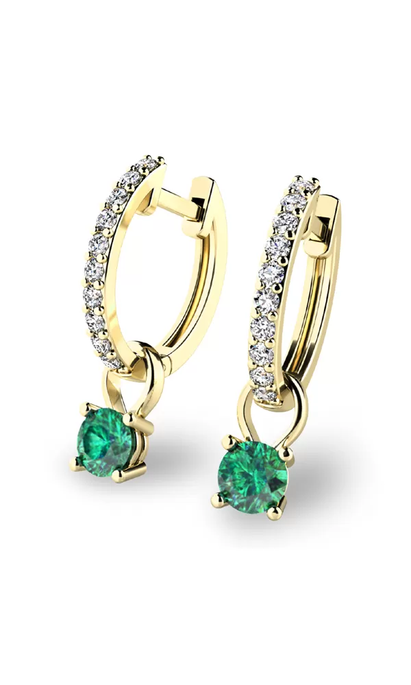 Prívesky so smaragdmi je možné z náušníc zložiť a nosiť ich bez príveskov s farebnými kameňmi, teda podľa Vašej nálady alebo potreby. Náušnice je možné zakúpiť aj samostatne bez príveskov pod kódom  10863- ZL-ZIR. Pod označením  10863 nájdete všetky varianty ako farieb zlata, tak s osadenými kameňmi.