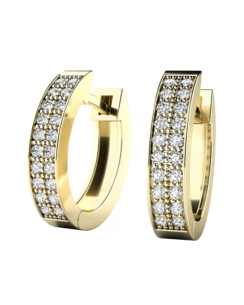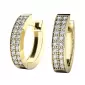 Náušnice oválky patří společně s kruhy mezi vůbec nejoblíbenější typ náušnic, náušnice jsou vhodné pro každodenní nošení i na společenské akce a sluší každé ženě! Tyto elegantní kruhy jsou vyrobeny ze žlutého čtrnáctikarátového zlata - 585/1000 v lesklé povrchové úpravě a s mírně půlkulatou horní plochou. V náušnicích je vsazeno čtyřicet kulatých zirkonů v briliantovém brusu, díky kterému dokonale odráží světlo a neuvěřitelné září. Vsazování zirkonů provádějí naši nejzkušenější mistři zlatníci ručně pod mikroskopem s přesností na 0,01mm a proto nehrozí vypadnutí kamínků jako to bývá u strojně vyráběných náušnic. Na náušnicích se "nešetřilo zlatem", proto jsou pevné a snesou i hrubší zacházení.