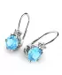 Krásne a elegantné dámske náušnice sú vyrobené z bieleho štrnásťkarátového zlata s rýdzosťou 585/1000 s lesklou povrchovou úpravou. Náušnice zdobia dva nádherné syntetické akvamaríny vo svetlo modrej farbe a dva menšie zirkóny vsadené nad akvamaríny. Akvamaríny aj zirkóny sú brúsené do briliantového tvaru, ktorý zaručuje maximálny lesk kameňov a celého šperku.