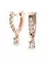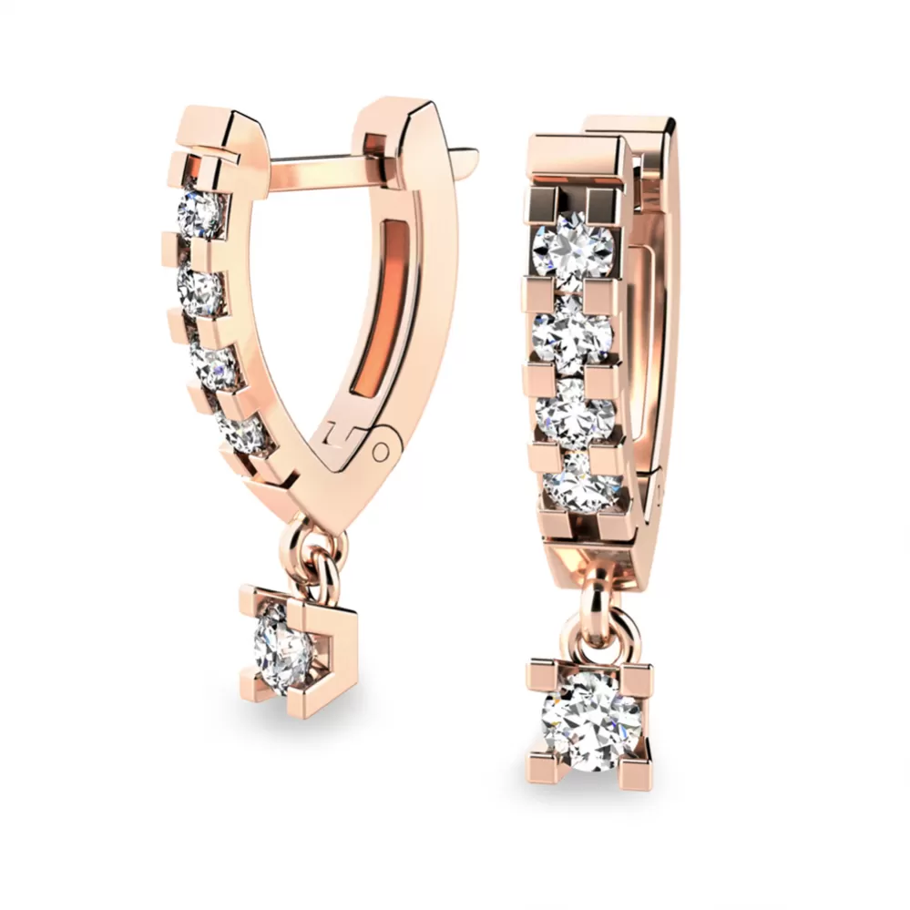 Moderné náušnice Vás oslovia nádhernou brilanciou zirkónov. Zirkóny sú briliantového brusu, ktorý im dodáva dokonalú brilanciu, skvele odráža svetlo a krásne žiari z každého uhla pohľadu! Vsadzovanie zirkónov vykonávajú naši najskúsenejší majstri zlatníci ručne pod mikroskopom s presnosťou na 0,01 mm a preto nehrozí vypadnutie kamienkov ako to býva u strojne vyrábaných náušníc. Náušnice sú vyrobené z ružového štrnásťkarátového zlata - 585/1000 v lesklej povrchovej úprave.