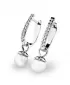 Dámské náušnice zdobené sladkovodními perlami a zirkony budou ideálním dárkem pro každou ženu. Tyto nádherné náušnice jsou vyrobeny z bílého čtrnáctikarátového zlata - 585/1000 v lesklé povrchové úpravě s devíti zirkony v každé náušnici . Zirkony jsou vybroušeny briliantovým brusem, díky kterému dokonale odráží světlo a neuvěřitelné září. Vsazování kamenů provádějí naši nejzkušenější mistři zlatníci ručně pod mikroskopem s přesností na 0,01mm a proto nehrozí vypadnutí kamínků jako to bývá u strojně vyráběných náušnic.