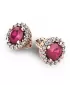 Nádherné luxusní dámské náušnice pecky osázené středovým syntetickým rubínem a zirkony budou ideálním dárkem pro každou ženu. Náušnice jsou vyrobeny z růžového čtrnáctikarátového zlata - 585/1000 v lesklé povrchové úpravě. Vsazené zirkony jsou vybroušeny dokonalým briliantovým brusem, díky kterému dokonale odráží světlo a jejich brilance neuvěřitelně září z každého úhlu pohledu! Všechny kameny jsou pevně uchyceny krapnami. Vsazování kamenů provádějí naši nejzkušenější mistři zlatníci ručně pod mikroskopem s přesností na 0,01mm a proto nehrozí vypadnutí kamínků jako to bývá u strojně vyráběných náušnic. Celé náušnice působí dokonalým a luxusním dojmem! Náušnice se zapínají na šroubek. Šroubek pro balónek je umístěný cca 2 mm pod horní okraj náušnice a tedy krásně zakrývá dírku v uchu.