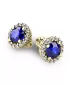 Nádherné luxusní dámské náušnice pecky osázené středovým syntetickým safírem a zirkony budou ideálním dárkem pro každou ženu. Náušnice jsou vyrobeny ze žlutého čtrnáctikarátového zlata - 585/1000 v lesklé povrchové úpravě. Vsazené zirkony jsou vybroušeny dokonalým briliantovým brusem, díky kterému dokonale odráží světlo a jejich brilance neuvěřitelně září z každého úhlu pohledu! Všechny kameny jsou pevně uchyceny krapnami. Vsazování kamenů provádějí naši nejzkušenější mistři zlatníci ručně pod mikroskopem s přesností na 0,01mm a proto nehrozí vypadnutí kamínků jako to bývá u strojně vyráběných náušnic. Celé náušnice působí dokonalým a luxusním dojmem! Náušnice se zapínají na šroubek. Šroubek pro balónek je umístěný cca 2 mm pod horní okraj náušnice a tedy krásně zakrývá dírku v uchu.
