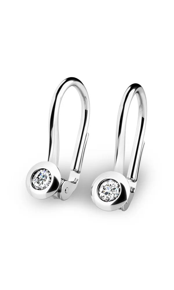 Decentný model visiacich náušníc zdobia oslňujúce zirkóny briliantového brusu. Tieto nádherné, žiarivé náušnice sú vyrobené z bieleho štrnásťkarátového zlata - 585/1000 v lesklej povrchovej úprave. Visiace náušnice sú zdobené jedným zirkónom briliantového brusu, ktorý je vsadený uprostred náušníc. Vďaka precíznemu brúsu zirkóny získajú dokonalú brilanciu. Skvele odráža svetlo a september. Náušnice sa vyrábajú aj v žltom zlate a zapínajú sa na klapku.