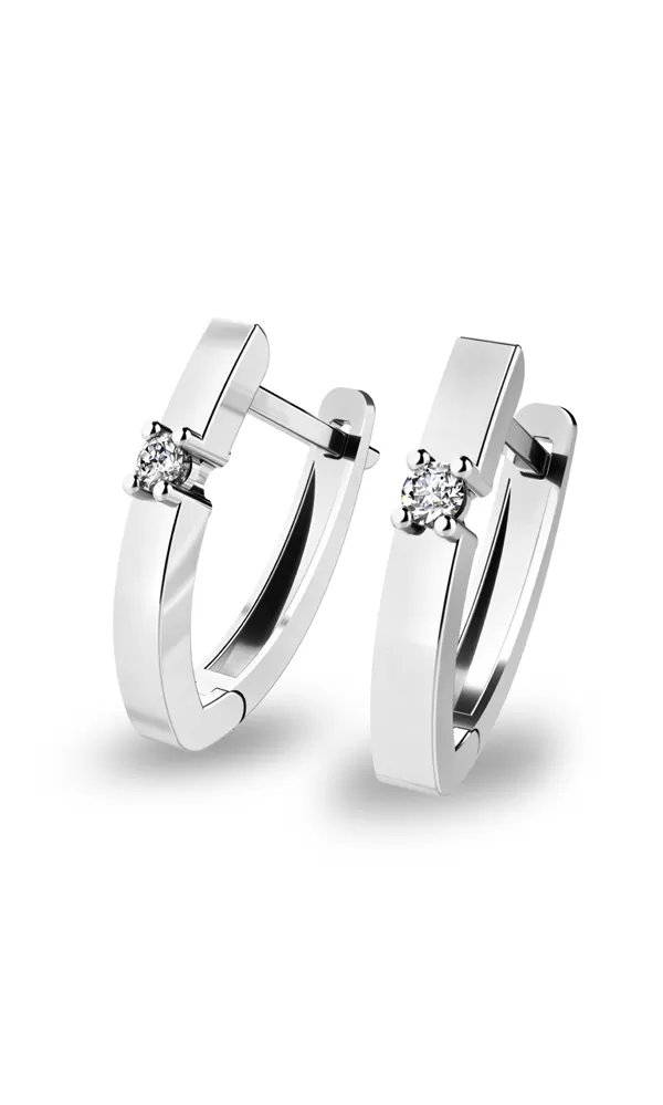 Módne náušnice Vás oslovia vsadenými zirkónmi, ktoré sú usadené uprostred náušnice. Zirkóny sú v briliantovom bruse, vďaka ktorému dokonale odráža svetlo a neuveriteľné september. Tieto nádherné náušnice sú vyrobené z bieleho štrnásťkarátového zlata - 585/1000 v lesklej povrchovej úprave.