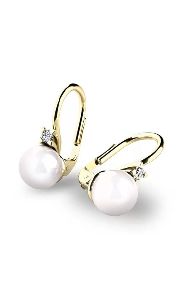 Tyto nádherné náušnice jsou vyrobeny ze žlurého čtrnáctikarátového zlata - 585/1000 v lesklé povrchové úpravě. Nad perlou je vsazen zirkon v briliantovém brusu pevně uchycený čtyřmi krapnami.