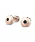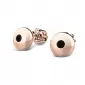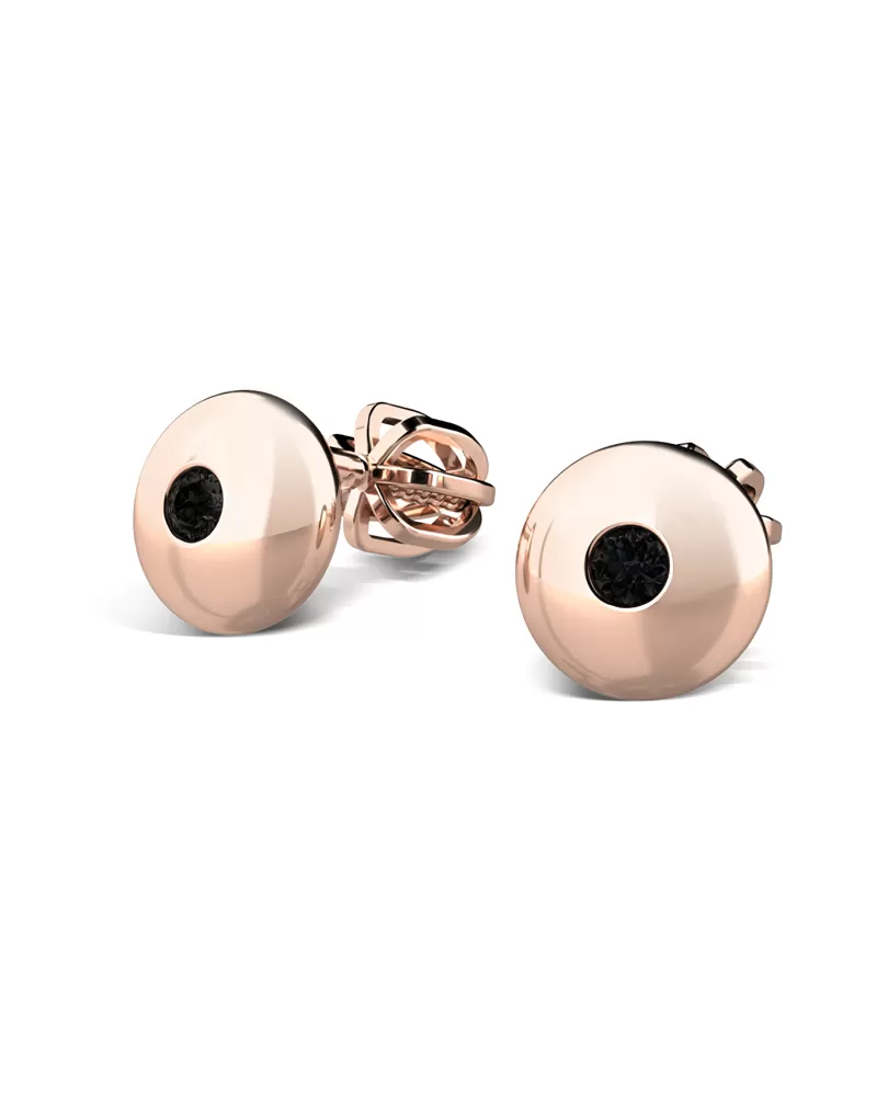 Náušnice sú čistého dizajnu v klasickom prevedení, ktorý patrí stále k najobľúbenejším typom. Tieto náušnice sú vyrobené z ružového štrnásťkarátového zlata - 585/1000 a sú celé v lesklej povrchovej úprave. Náušnice sú zdobené dvoma čiernymi zirkónmi briliantového brusu. Vsadzovanie zirkónov vykonávajú naši najskúsenejší majstri zlatníci ručne pod mikroskopom s presnosťou na 0,01 mm a preto nehrozí vypadnutie kamienkov ako to býva u strojne vyrábaných náušníc. Zapínanie náušníc je na skrutky a balóniky.