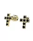 Náušnice v tvare krížikov sú po celej ploche posádzané čiernymi zirkónmi. Tieto náušnice sú vyrobené zo žltého štrnásťkarátového zlata - 585/1000 a sú celé v lesklej povrchovej úprave. V náušniciach je vsadených 12 ks čiernych zirkónov briliantového brusu. Vsadzovanie zirkónov vykonávajú naši najskúsenejší majstri zlatníci ručne pod mikroskopom s presnosťou na 0,01 mm a preto nehrozí vypadnutie kamienkov ako to býva u strojne vyrábaných náušníc. Zapínanie náušníc je na skrutky a balóniky.