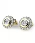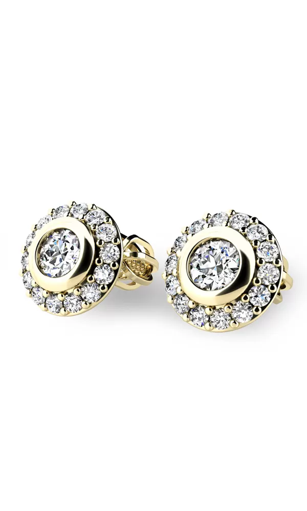 Dámske náušnice kôstky sú veľmi obľúbené. Náušnice sú zdobené jedným hlavným zirkónom briliantového brusu, ktorý je vsadený uprostred náušníc a dvadsiatimi ôsmimi menšími zirkónmi briliantového brusu, ktoré sú vsadené okolo zirkónov. . Tieto nádherné, žiarivé náušnice sú vyrobené zo žltého štrnásťkarátového zlata - 585/1000 v lesklej povrchovej úprave. Náušnice sa zapínajú na skrutku.