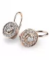 Nádherný model klasických náušníc zdobí tridsať oslňujúcich zirkónov briliantového brusu. Tieto žiarivé náušnice sú vyrobené z ružového štrnásťkarátového zlata - 585/1000 v lesklej povrchovej úprave. Väčší stredový zirkón obklopuje štrnásť menších zirkónov v každej náušnici a opticky ich zväčšuje lesklý lem okolo zirkónov. Vďaka precíznemu brúsu zirkóny získali dokonalú brilanciu. Skvele odráža svetlo a september! Náušnice sa vyrábajú aj v bielom a žltom zlate a zapínajú sa na klapku. Vsadzovanie zirkónov vykonávajú naši najskúsenejší majstri zlatníci ručne pod mikroskopom s presnosťou na 0,01mm a preto nehrozí vypadnutie kamienkov ako to býva u strojne vyrábaných náušníc.