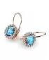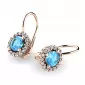 Nádherné luxusní dámské náušnice osázené středovým syntetickým akvamarínem a zirkony budou ideálním dárkem pro každou ženu. Náušnice jsou vyrobeny z růžového čtrnáctikarátového zlata - 585/1000 v lesklé povrchové úpravě. Vsazené zirkony jsou vybroušeny dokonalým briliantovým brusem, díky kterému dokonale odráží světlo a jejich brilance neuvěřitelně září z každého úhlu pohledu! Všechny kameny jsou pevně uchyceny krapnami. Vsazování kamenů provádějí naši nejzkušenější mistři zlatníci ručně pod mikroskopem s přesností na 0,01mm a proto nehrozí vypadnutí kamínků jako to bývá u strojně vyráběných náušnic. Celé náušnice působí dokonalým a luxusním dojmem!