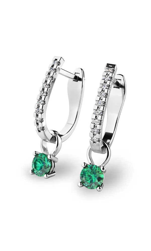 Prívesky so smaragdmi sú na náušniciach zavesené "na voľno" a je možné ich zložiť a náušnice nosiť aj bez smaragdov - teda podľa nálady alebo potreby. Náušnice je možné zakúpiť aj samostatne bez príveskov pod kódom 10862-B -ZIR, alebo s príveskami s perlami pod kódom 10862-B-FW. Pod označením 10862 nájdete všetky varianty ako farieb zlata, tak s osadenými kameňmi.