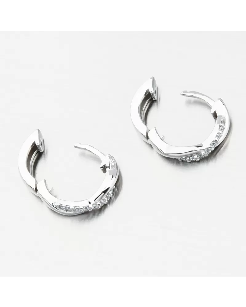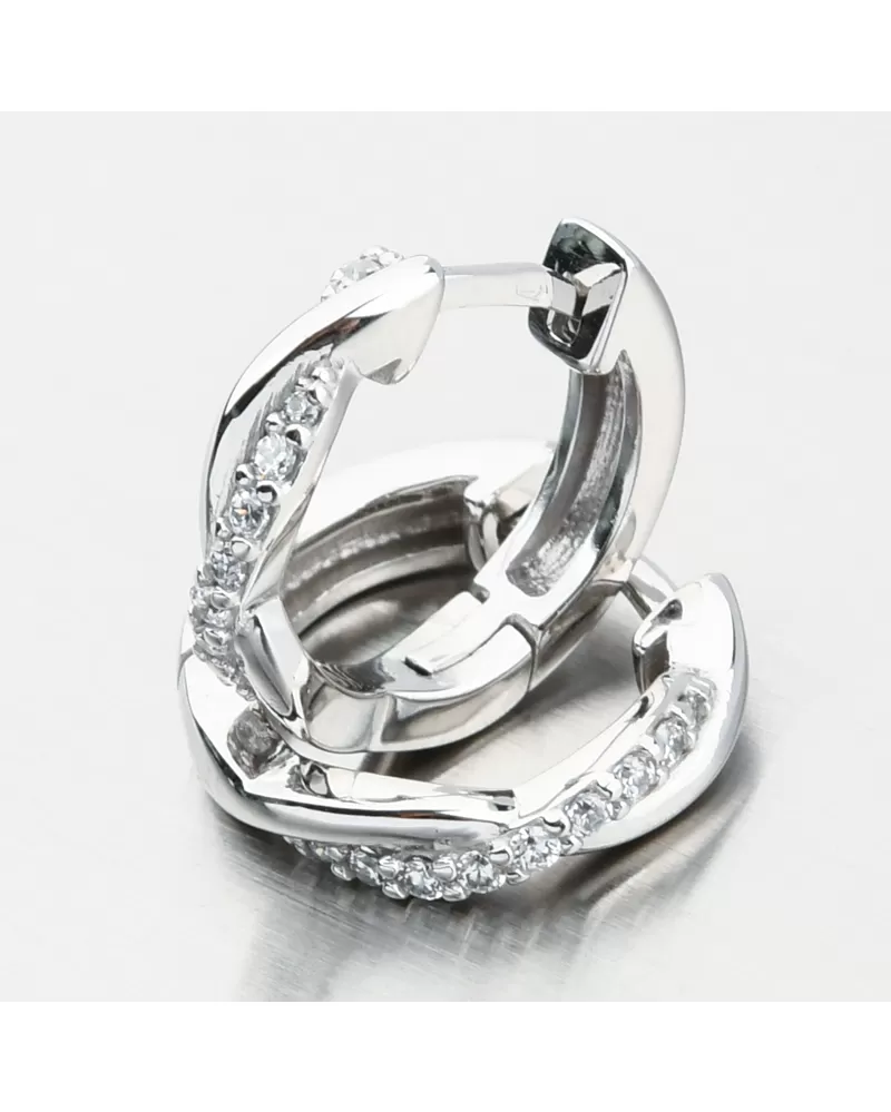 Mäkké, ale výrazné skrútené náušnice. Dekorácia pozostáva z dvoch vzájomne prepletených línií, z ktorých jedna je vo vysokom lesku a druhá je vybavená vynikajúcimi zirkónmi. Zirkóny sú brilantné brúsenie, ktoré zaisťujú maximálnu brilanciu leštenej aspektu, dokonale odrážajú svetlo a neuveriteľne svieti zo všetkých pohľadov. Kruhy sú jedným z starých príslušenstiev, ktoré musí mať každá žena vo svojej šperkovej skrinke.
