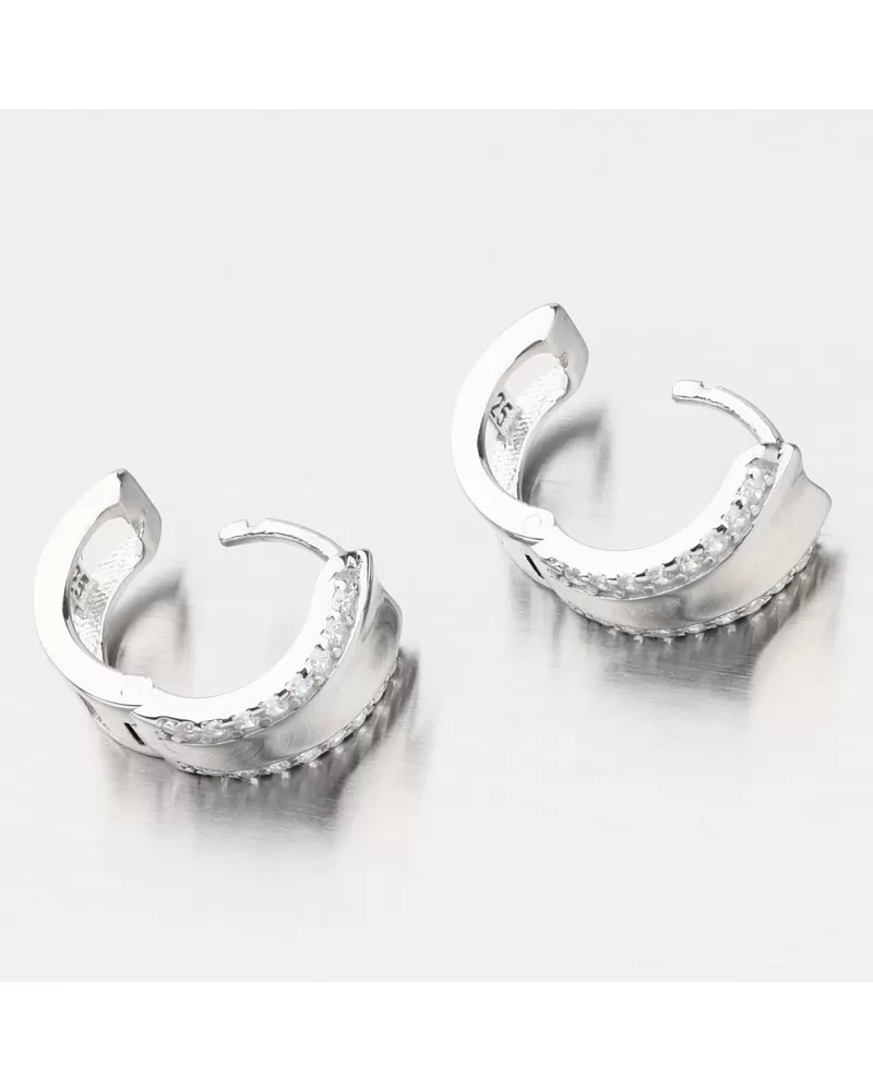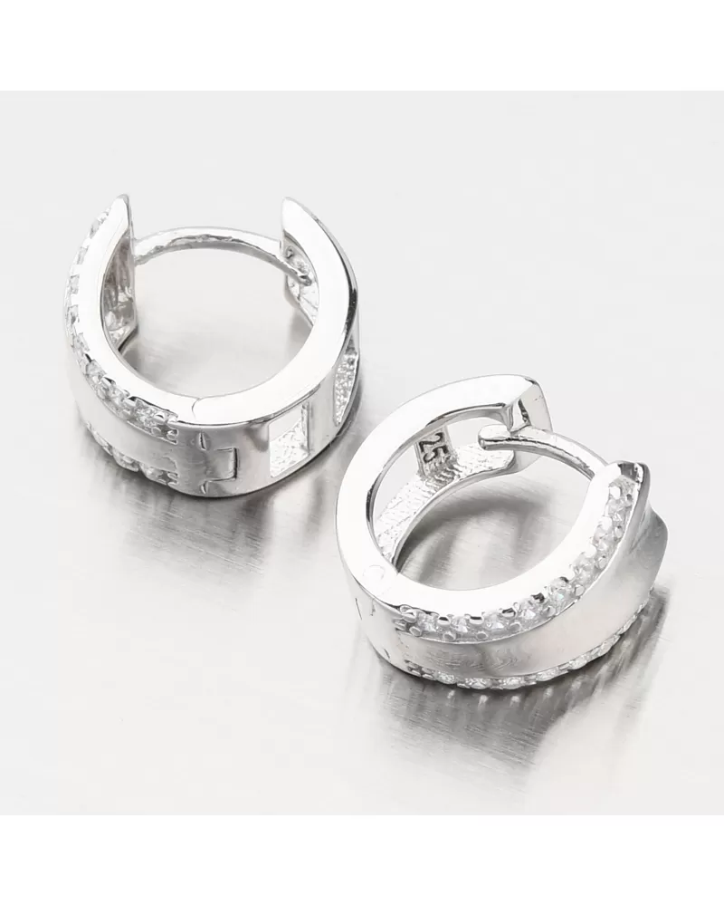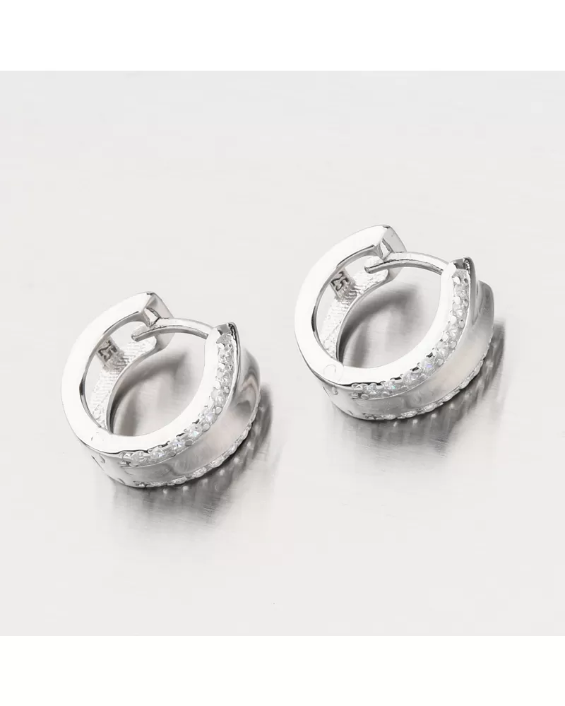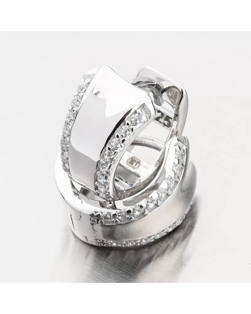 Veľmi zaujímavé prevedenie dámskych náušníc Vás oslní. Silnejšie kruhy sú v prednej časti rozšírené a zdobené zirkónmi v briliantovom bruse. Briliantový brús zaisťuje maximálnu brilanciu vybrúsených facet, dokonale odráža svetlo a neuveriteľne žiari z každého uhla