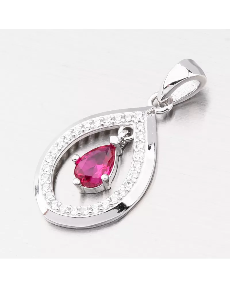 Elegantné ženské strieborné prívesky v tvare slzy. V príveskom dominuje syntetické slzy v tvare červenej farby, ktorá nie je pevná a každý pohyb sa rozsvieti. Okolo obvodu sú umiestnené menšie zirkóny v brilantnom strihu. Tento rez poskytuje maximálnu brilanciu pozemnej stránky, dokonale odráža svetlo a neuveriteľne svieti zo všetkých pohľadov.