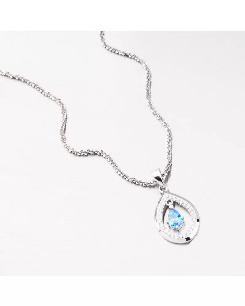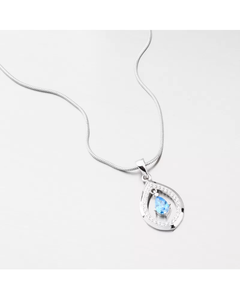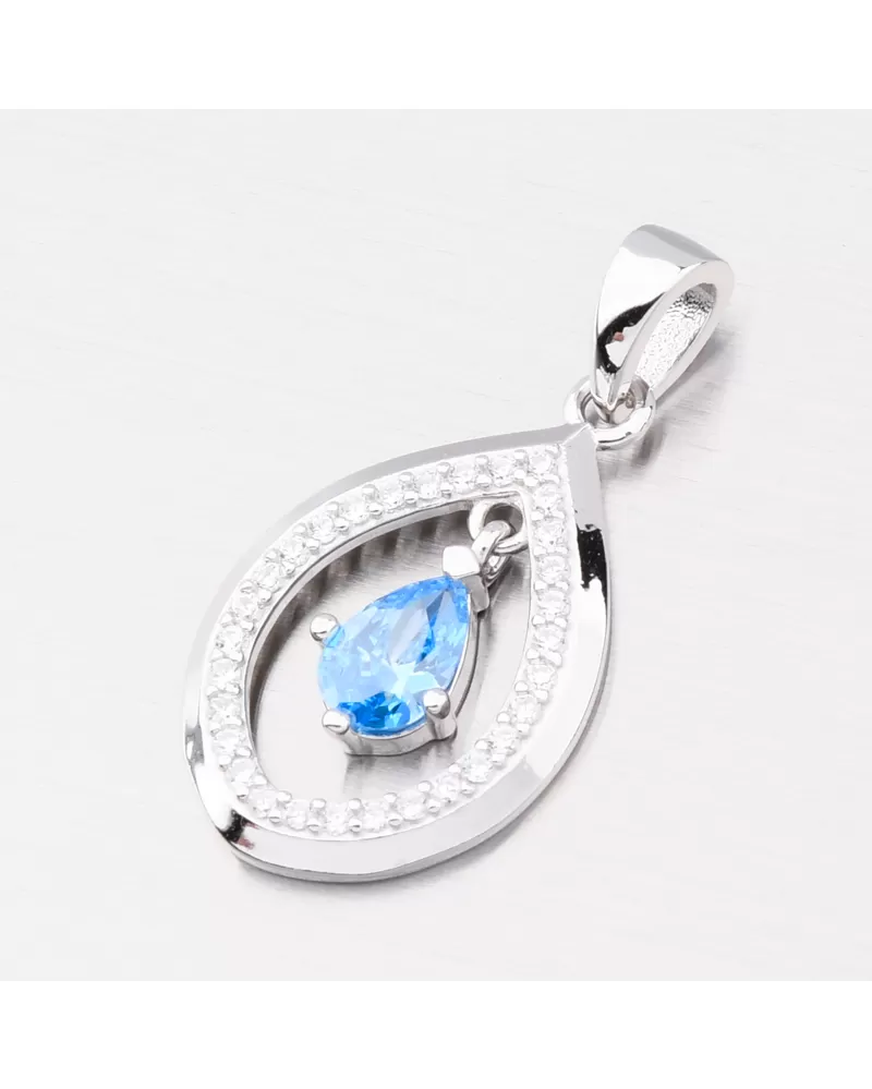 Elegantné ženské strieborné prívesky v tvare slzy. V prívesku dominuje syntetický aquamarín v tvare sĺz v modrej farbe, ktorá nie je pevná a každý pohyb sa rozsvieti. Okolo obvodu sú umiestnené menšie zirkóny v brilantnom strihu. Tento rez poskytuje maximálnu brilanciu pozemnej stránky, dokonale odráža svetlo a neuveriteľne svieti zo všetkých pohľadov.