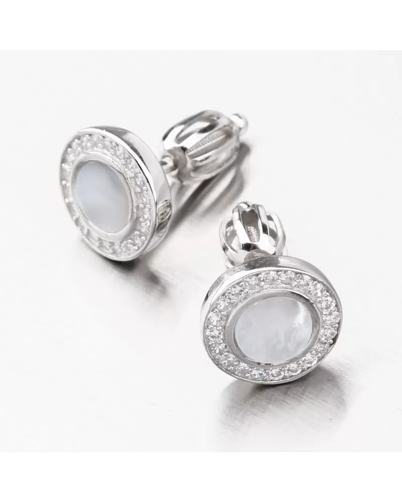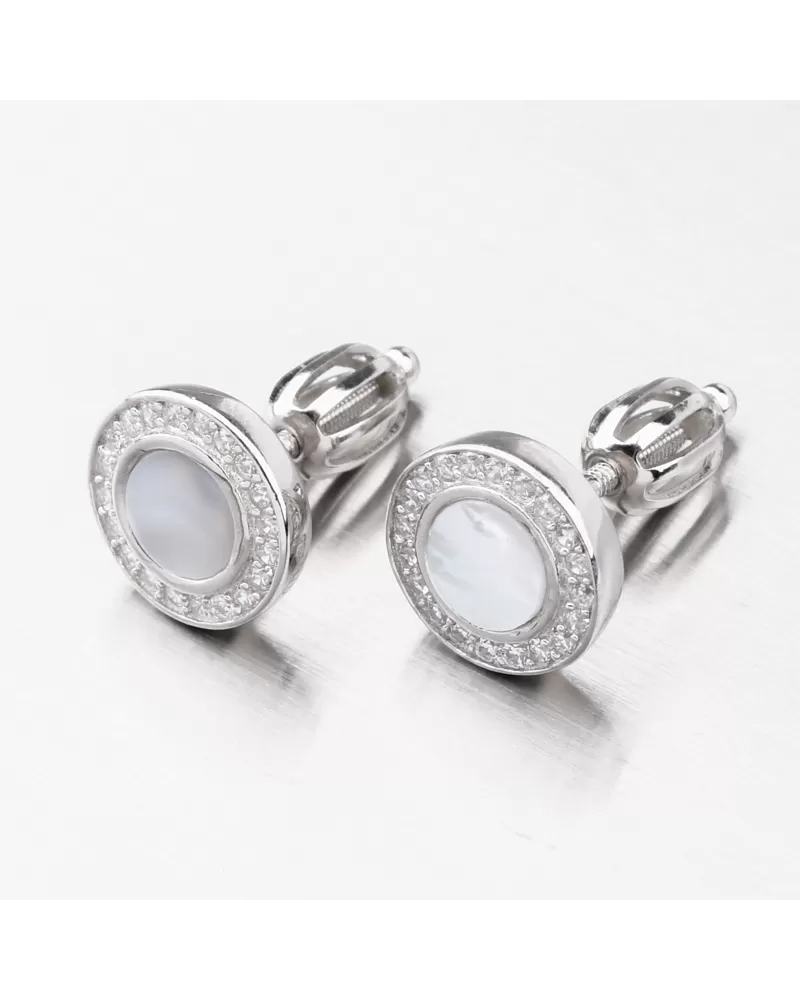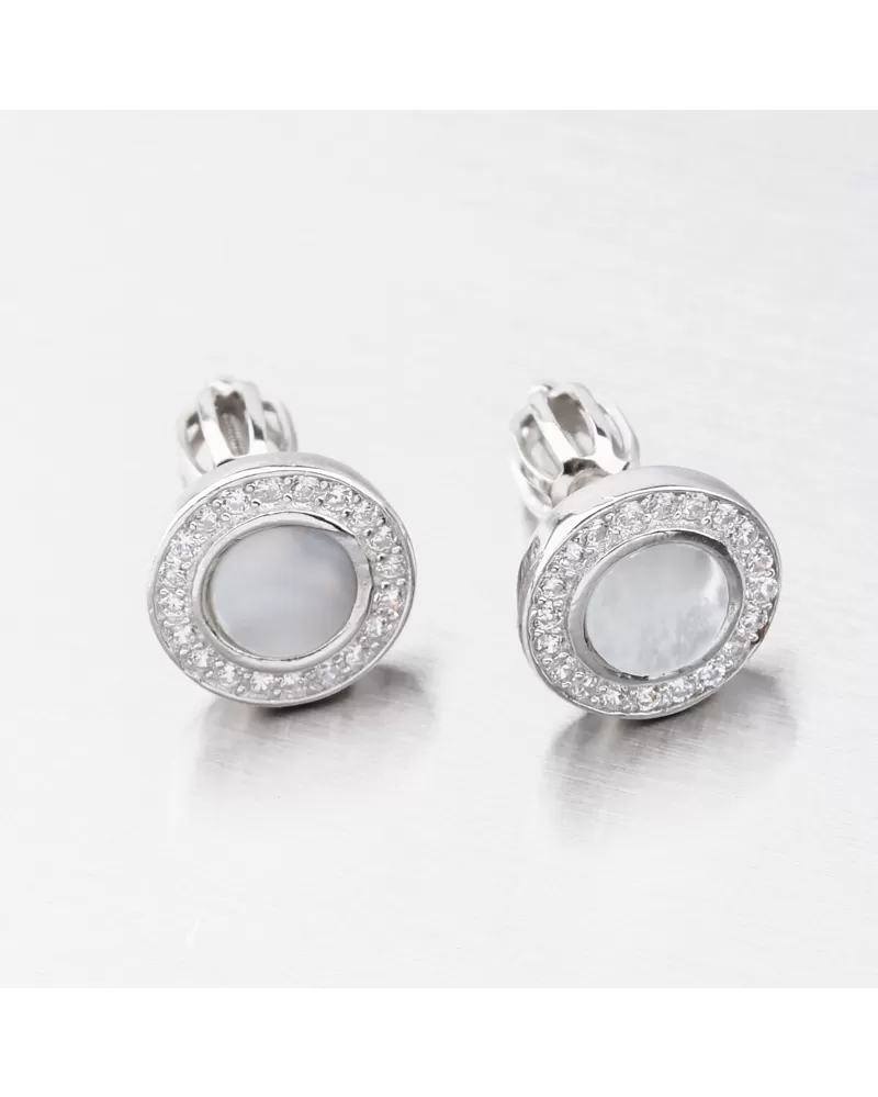Jemné strieborné náušnice vás priťahujú trblietavým dizajnom a praktickým tvarom. Náušnice sú zdobené matkou -of -pearl a zirkónmi, ktoré sú umiestnené okolo obvodu. Všetky zirkóny sú brilantným strihom, ktorý poskytuje maximálnu brilanciu leštenej fazety, dokonale odráža svetlo a neuveriteľne svieti zo všetkých pohľadov. Tento minimalistický rozmer náušníc je vhodný pre prácu a spoločnosť. Bude zamilovaná do preferovaných žien preferovaná klasická elegancia.