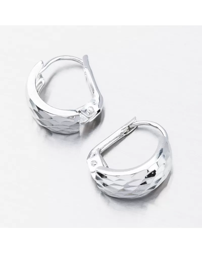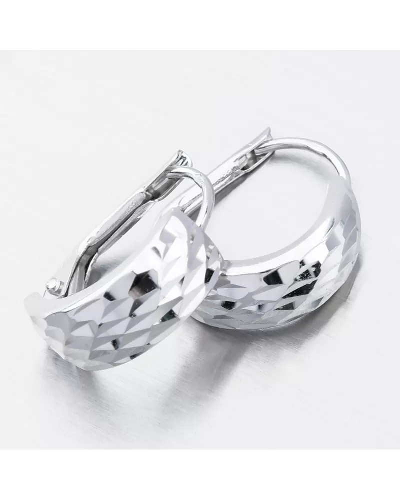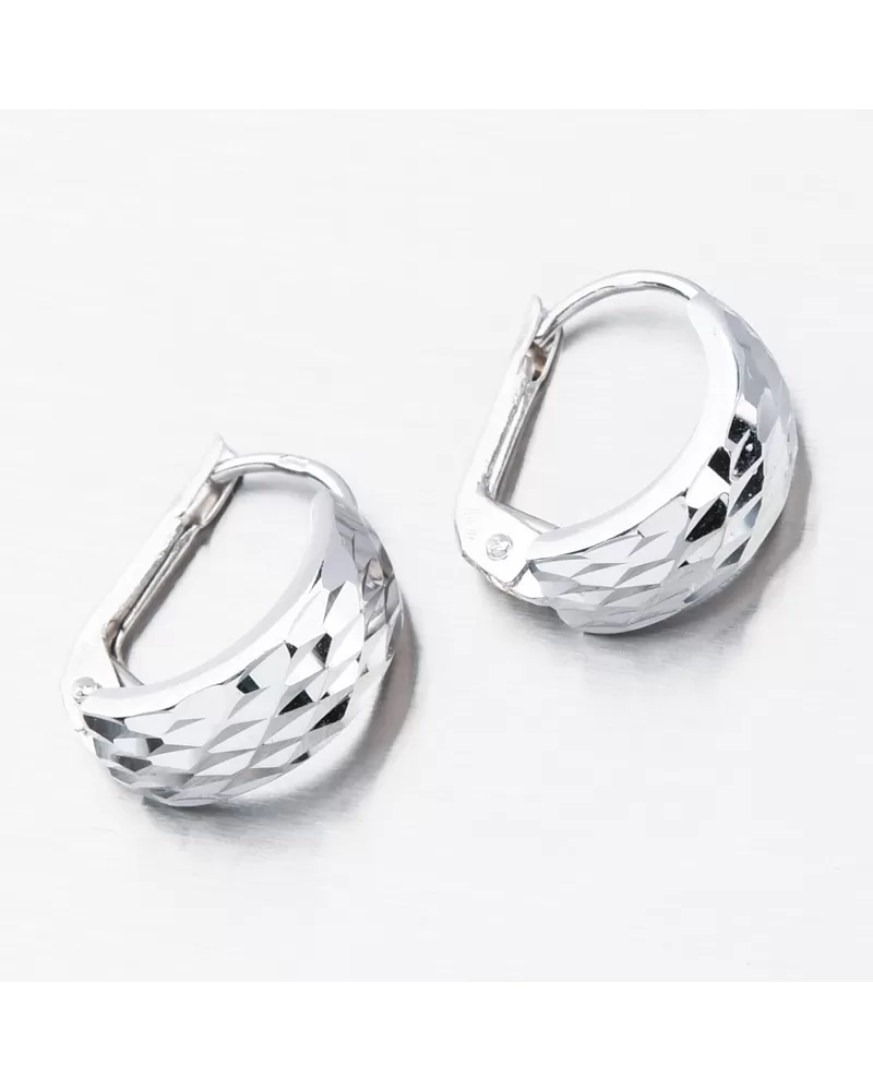 Hľadáte klenot, ktorý je originálny, a budete si istí, že ho máte iba? Tieto náušnice s bielym zlatom s čistotou 585/1000 v lesklom povrchu s fazetmi, ktoré sú mleté ​​s diamantovým nástrojom, ktorý zaisťuje maximálny lesk. Náušnice majú obdĺžnikový tvar so zaobleným dnom. Náušnice sú pripevnené na pasívne patenty.