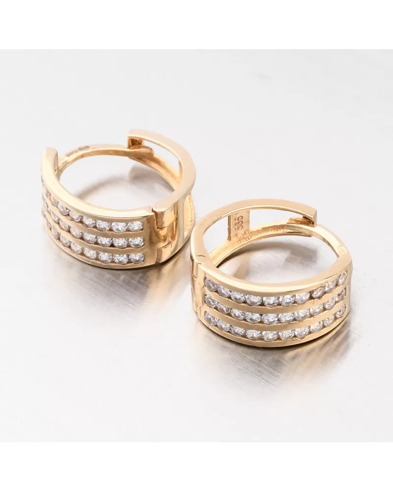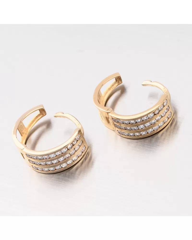 Náušnice sú vyrobené zo žltých štrnástich -karátových zlatých 585/1000 v lesklom povrchu.