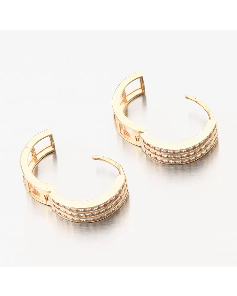 Mäkké, ale výrazné náušnice zdobené tromi radmi šumivých zirkónov. Zirkóny sú brilantné brúsenie, ktoré zaisťujú maximálnu brilanciu leštenej aspektu, dokonale odrážajú svetlo a neuveriteľne svieti zo všetkých pohľadov. Kruhy sú jedným z starých príslušenstiev, ktoré musí mať každá žena vo svojej šperkovej skrinke. Náušnice sú vhodné na každodenné nosenie a fantastické upevnenie vďaka ich konštrukcii, ktorá jednoducho zaskočí a drží, bude ideálnym klenotom.