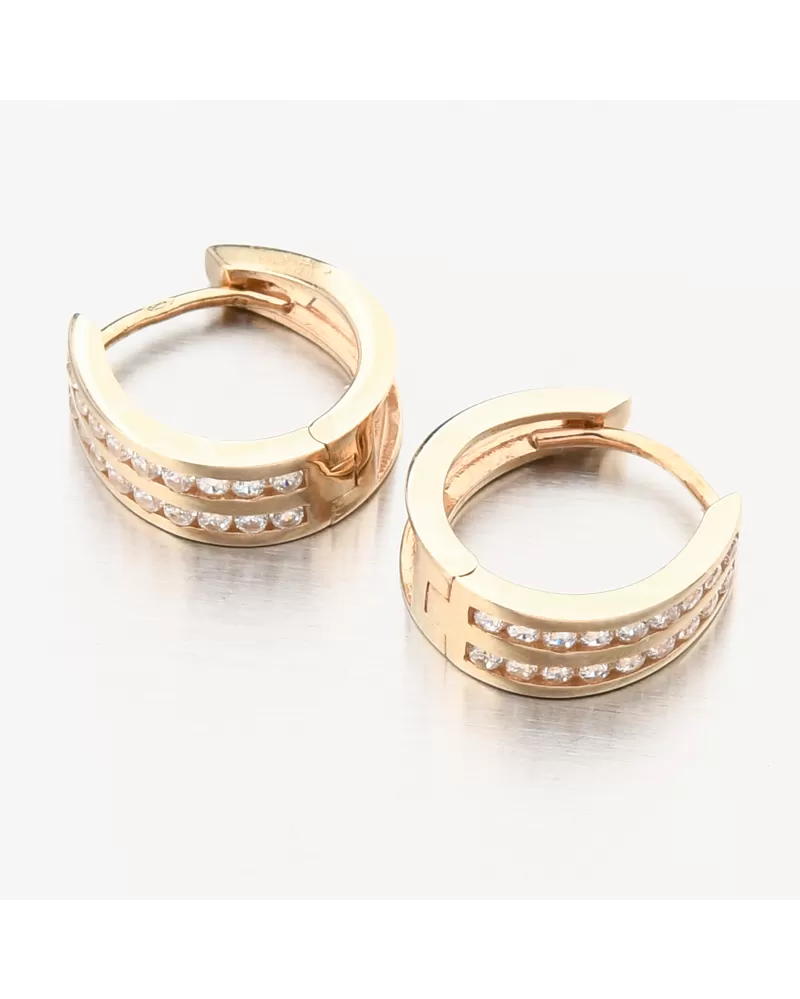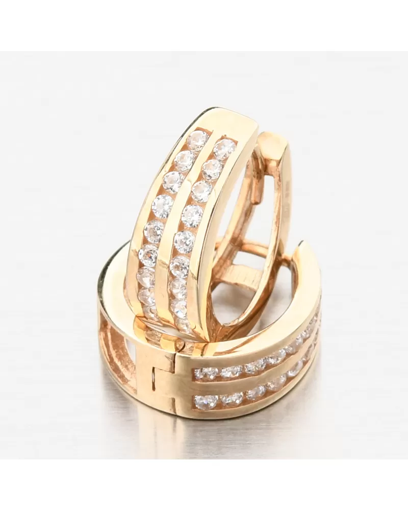 Náušnice sú vyrobené zo žltých štrnástich -karátových zlatých 585/1000 v lesklom povrchu.