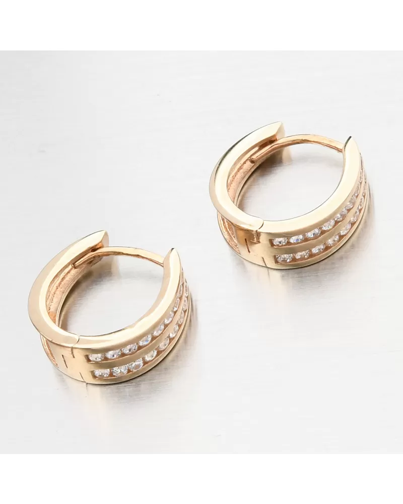 Mäkké, ale výrazné náušnice zdobené dvoma radmi šumivých zirkónov. Zirkóny sú brilantné brúsenie, ktoré zaisťujú maximálnu brilanciu leštenej aspektu, dokonale odrážajú svetlo a neuveriteľne svieti zo všetkých pohľadov. Kruhy sú jedným z starých príslušenstiev, ktoré musí mať každá žena vo svojej šperkovej skrinke. Náušnice sú vhodné na každodenné nosenie a fantastické upevnenie vďaka ich konštrukcii, ktorá jednoducho zaskočí a drží, bude ideálnym klenotom.