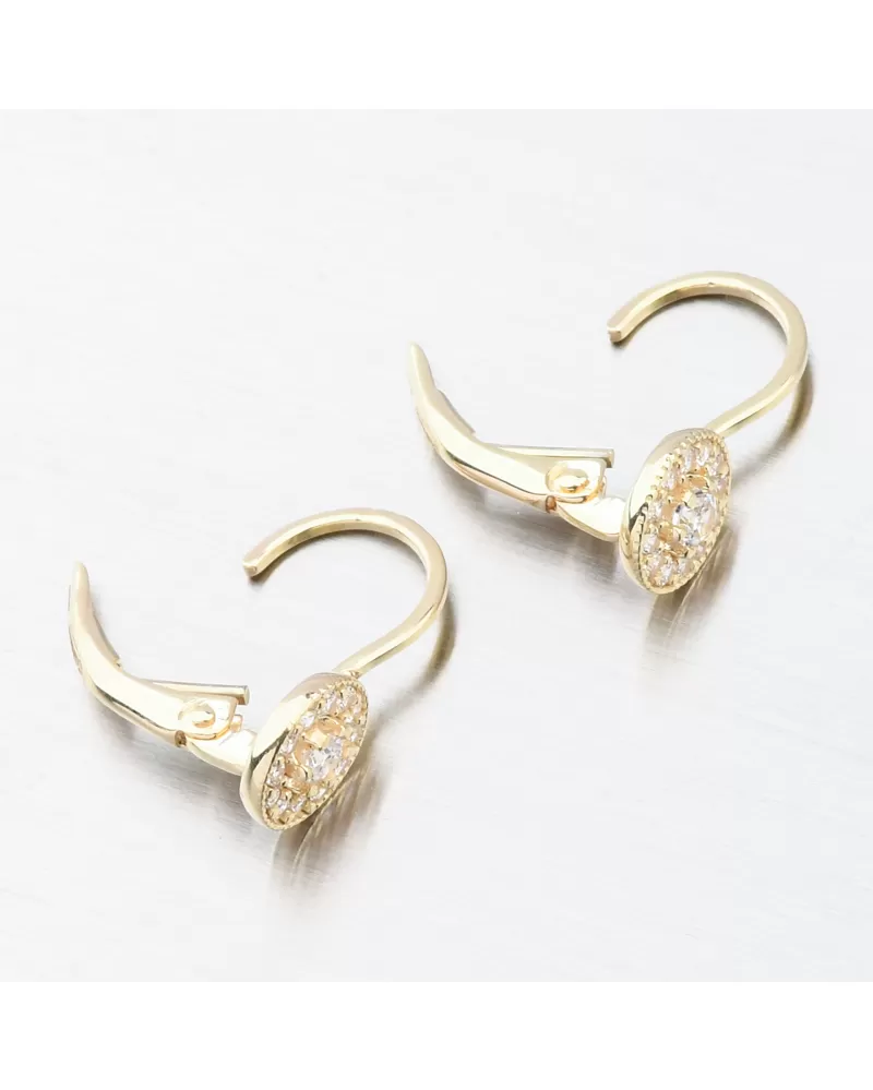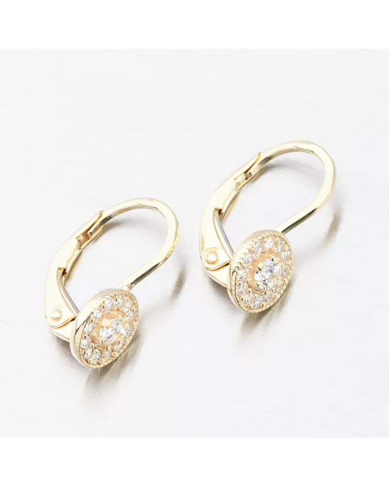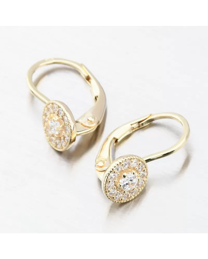 Brilantné náušnice v populárnom okrúhlom tvare sú zdobené malými zirkónmi brilantných mletí namontovaných na celej oblasti dekorácií. Brilantná Skore poskytuje zirkóny brilancii skutočných diamantov. Náušnice sú dokonale spracované do najmenších detailov a budú ideálnym darčekom, ktorý určite poteší dievča alebo ženu.