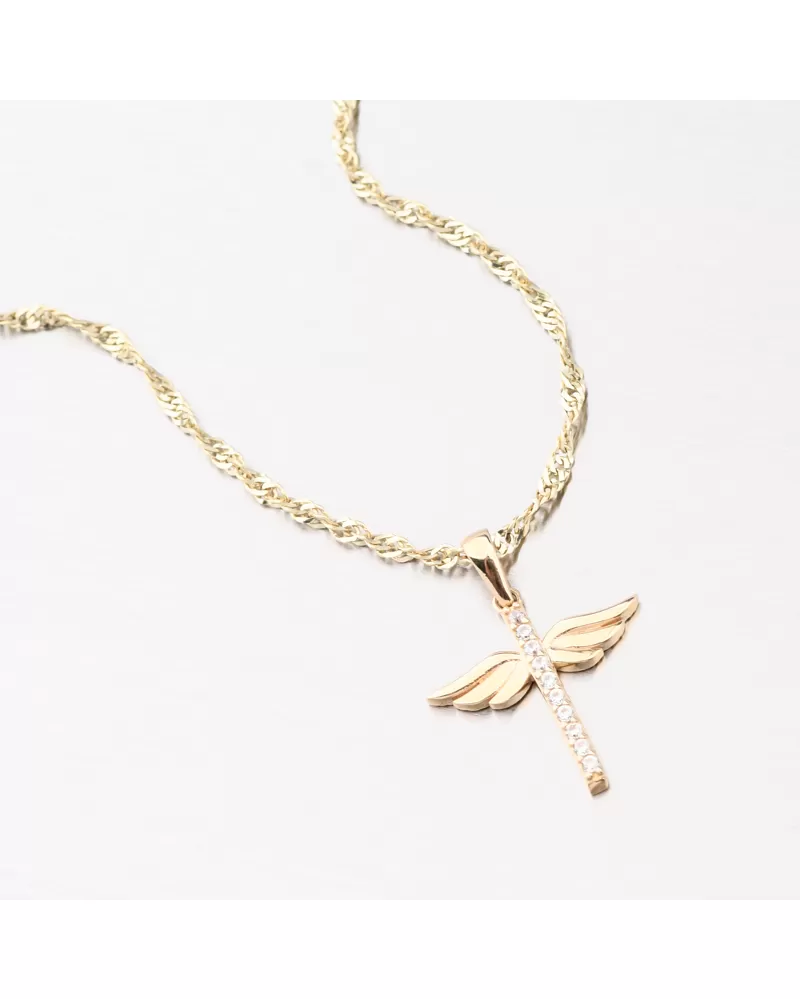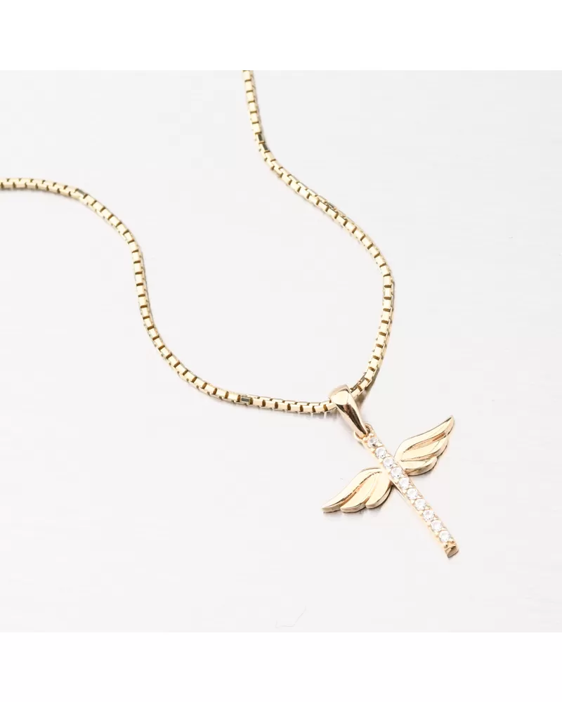 Zlatý kríž so zirkónmi a krídlami 43-22421