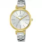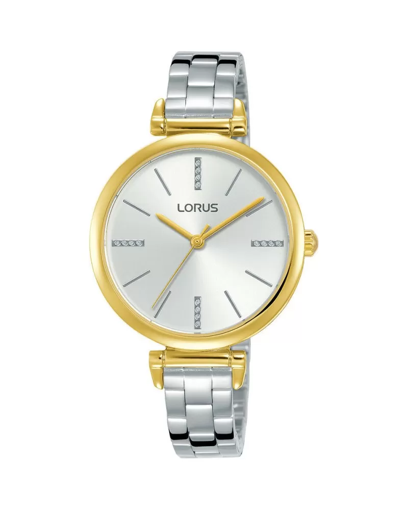 Dámske hodinky značky Lorus, ktoré sú v obľúbenej bi-color prevedení. Puzdro je so zlátením vo farbe žltého zlata, remienok je z ocele, ktorá vyniká farebnou stálosťou a vysokou odolnosťou. Ciferník je po celom obvode osadený jemnými zirkónmi.
