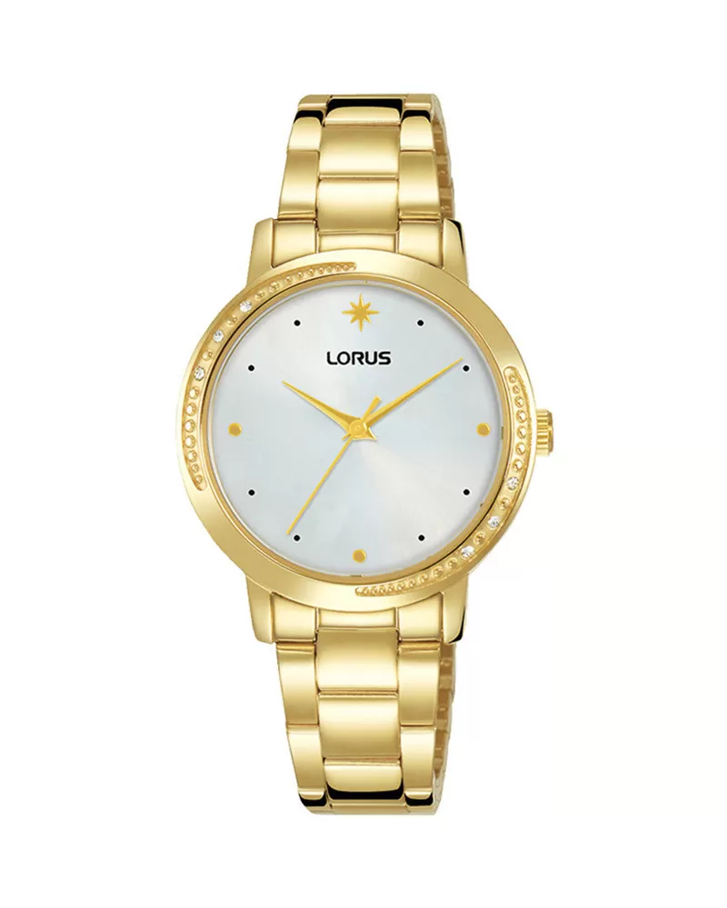 Tieto zlaté hodinky Vás uchvátia na prvý pohľad. Hodinky Lorus sú z ocele s PVD pozlátením vo farbe žltého zlata. Puzdro hodiniek je osadené trblietavými kamienkami.