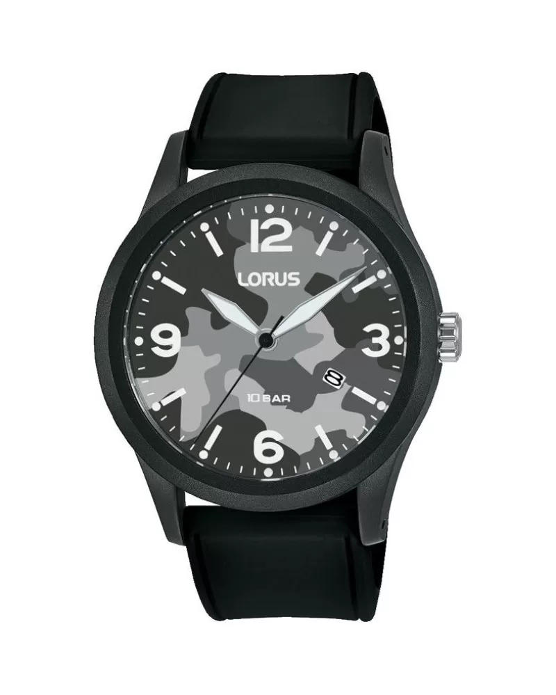 Pánske maskáčové hodinky Lorus RH913MX9 na Quartz pohon na batériu. Hodinky sú v športovom dizajne, ale zaručene hodinky oceníte aj na každodenné nosenie. Plastové čierne puzdro, šedý maskáčový ciferník a silikónový remienok v čiernej farbe, ktorý bude pohodlný aj po celodennom nosení. Ďalej oeníte vodotesnosť 100m, minerálne sklíčko a dátumovku.